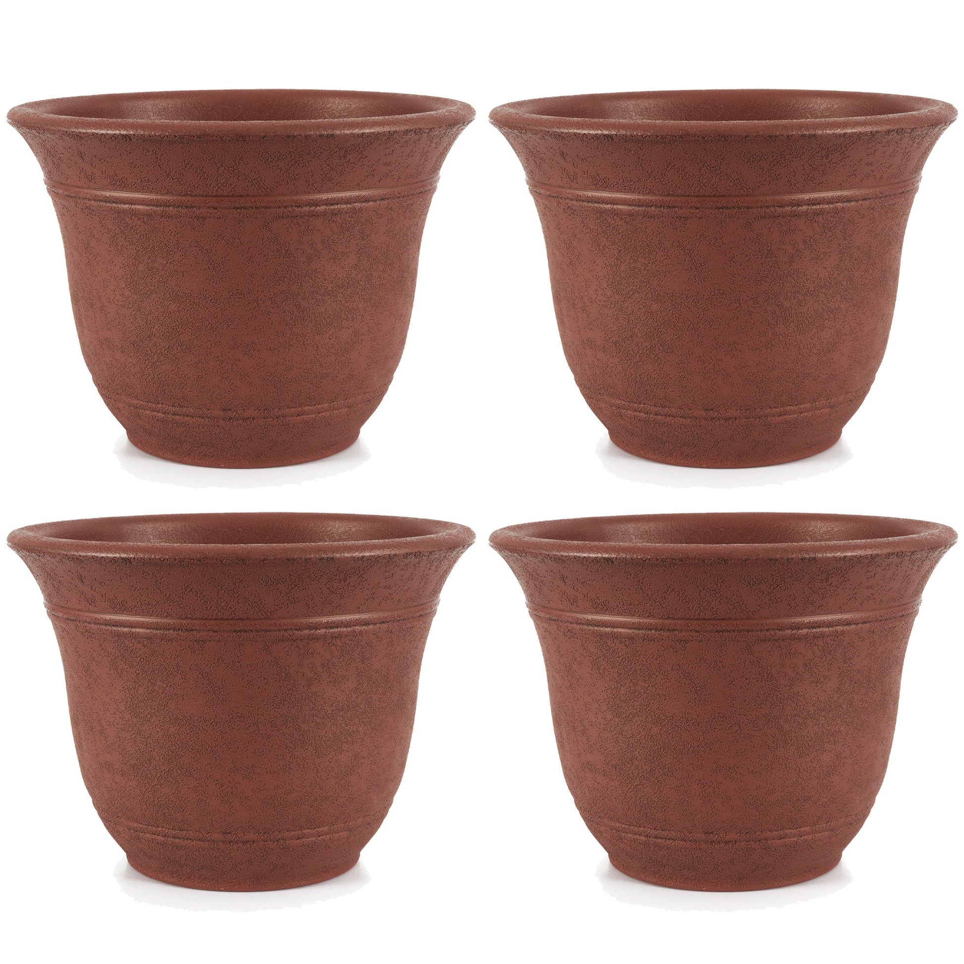 HC Companies Sierra 13 In Round Garden Planter Pot, Rustic Redstone (4 Pack)