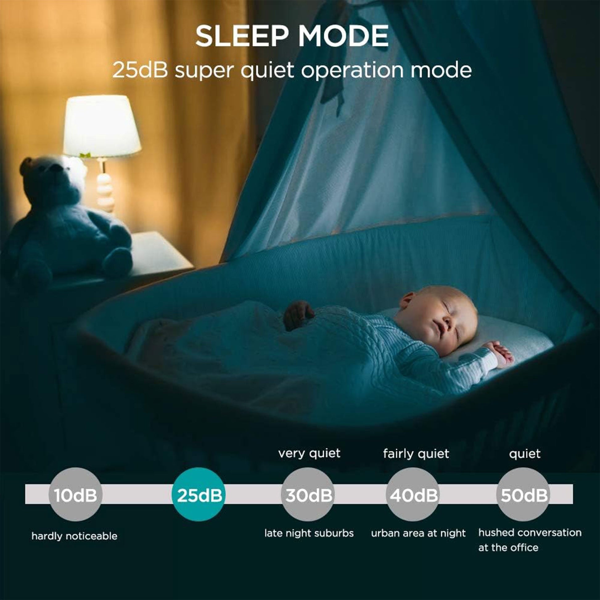 - Nearly voiceless operation in sleep mode with only 25 decibels of noise, ensuring fresh, purified air without disrupting your tranquility