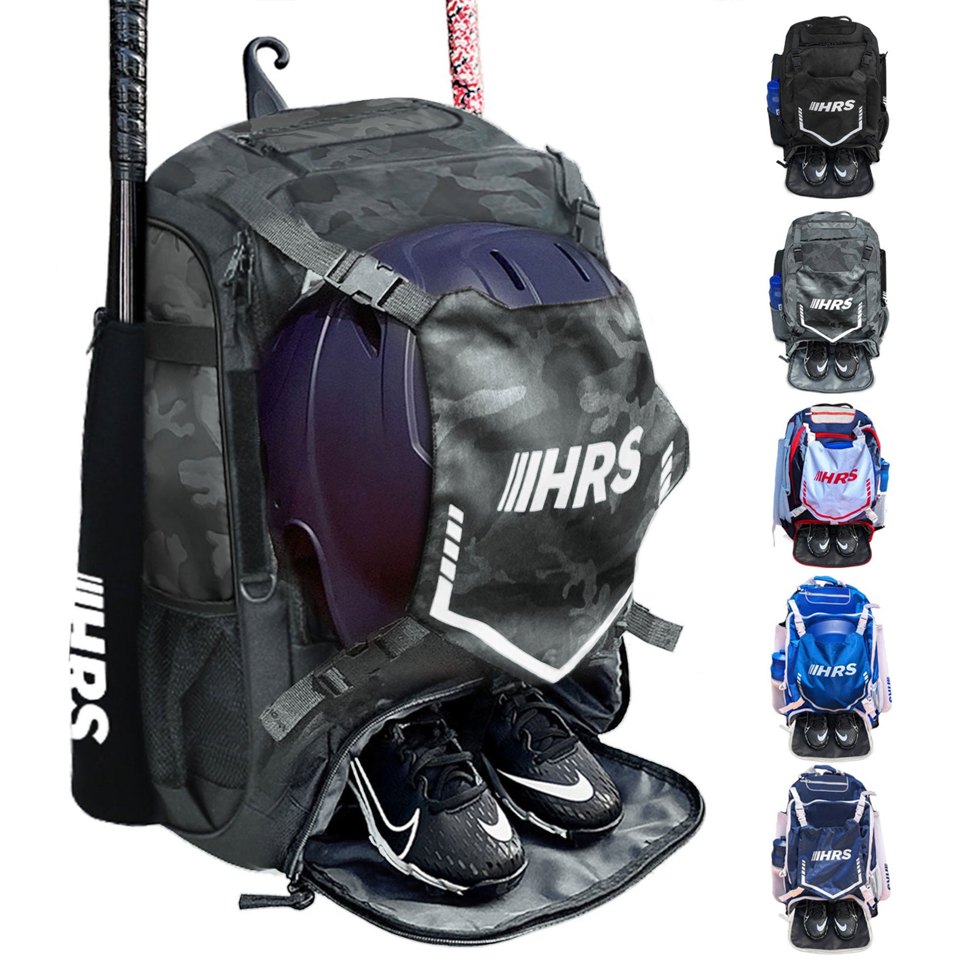 Hit Run Steal Bat Bag Backpack, Holds up to 4 Bats, Glove, and Helmet, Gray Camo