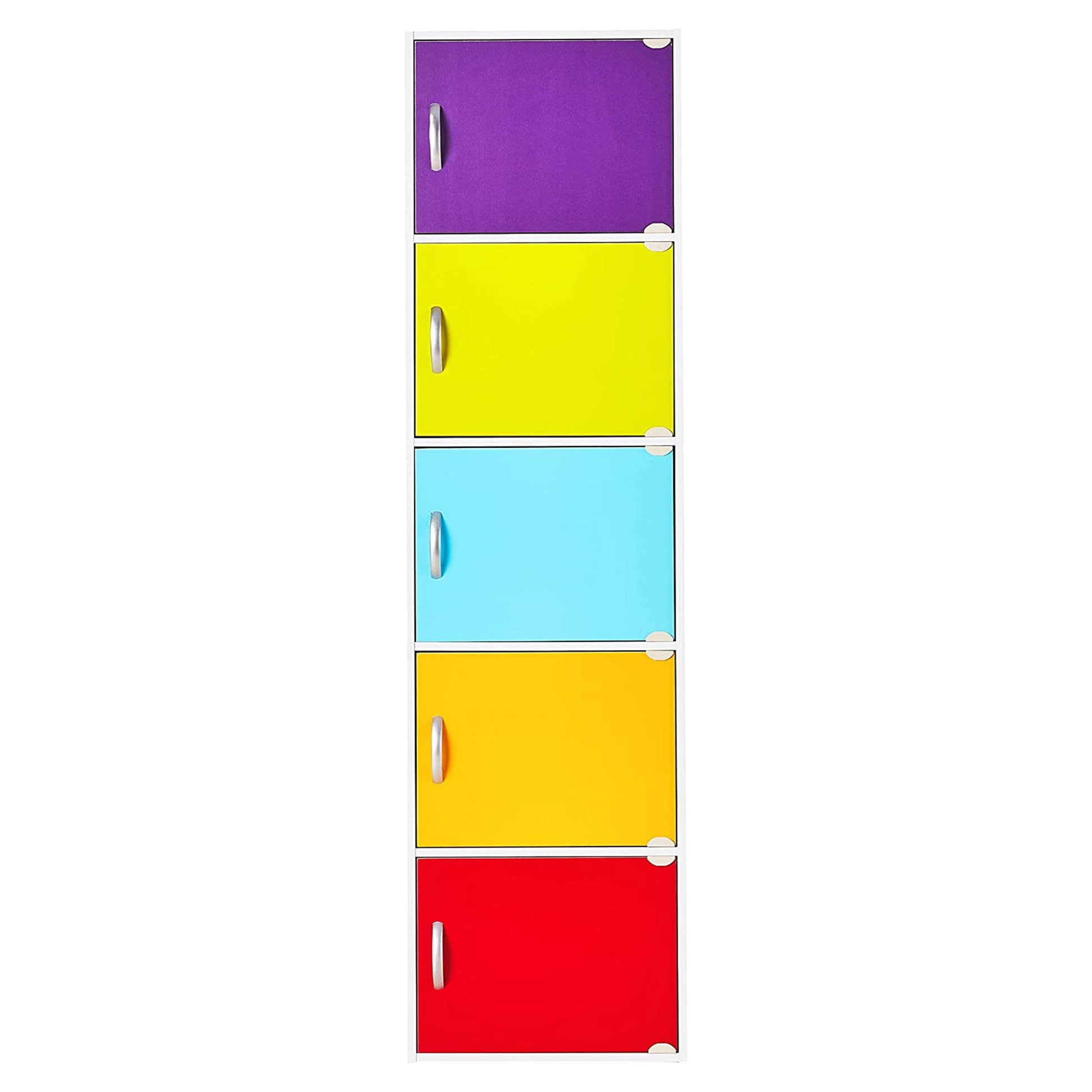Hodedah 5 Shelf Home and Office Enclosed Organization Storage Cabinet, Rainbow