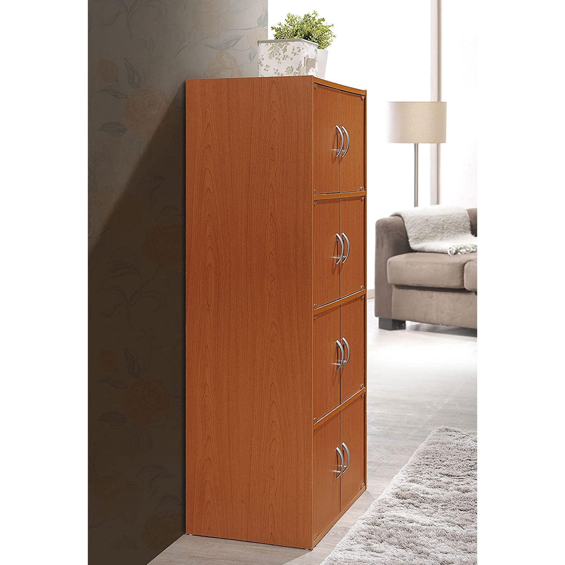 Hodedah 8 Door Enclosed Multipurpose Storage Cabinet for Home and Office, Cherry