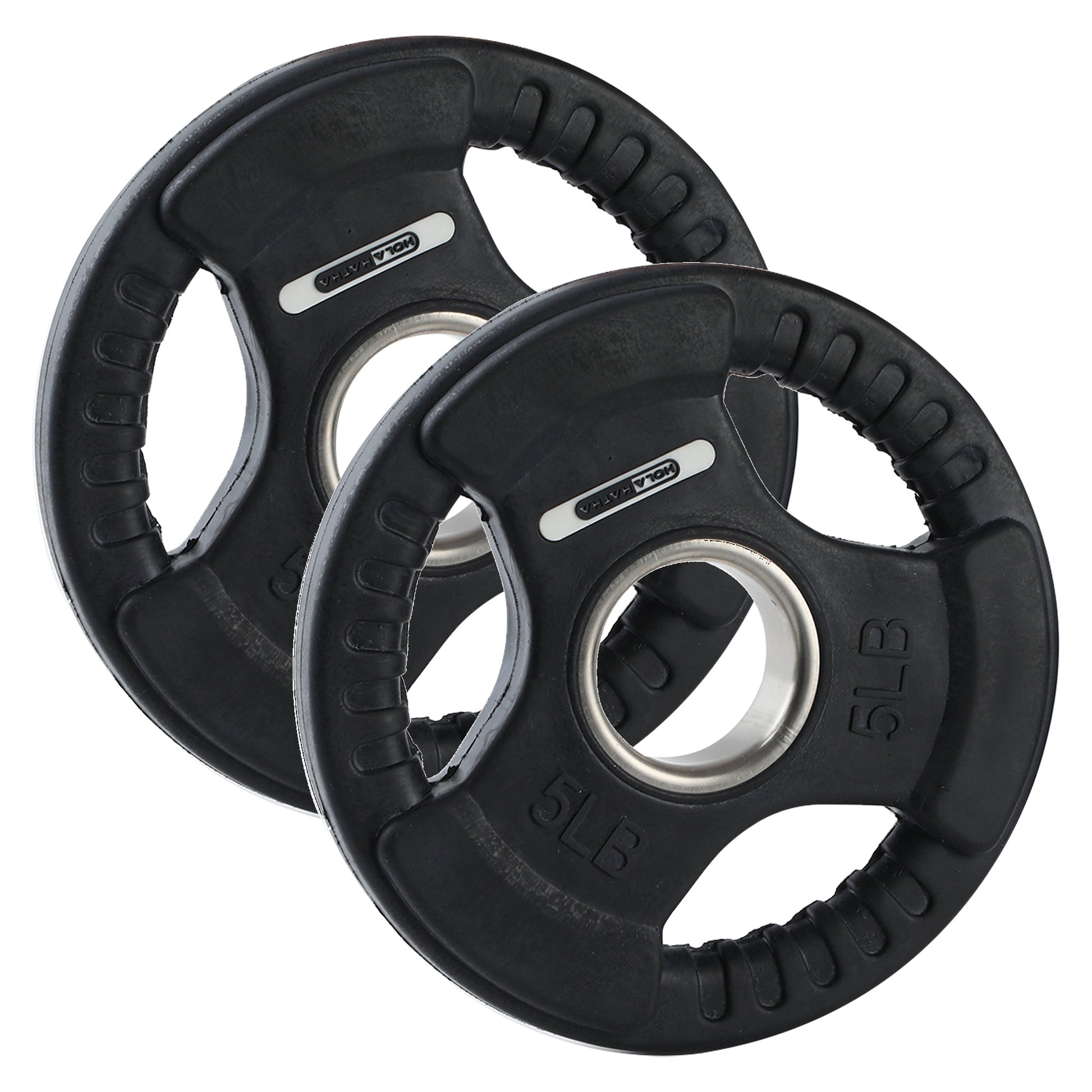 Unleash your full potential and embrace cutting-edge weightlifting with the 2-Pack of 5-Pound Olympic Rubber-Coated Weight Plate from HolaHatha.