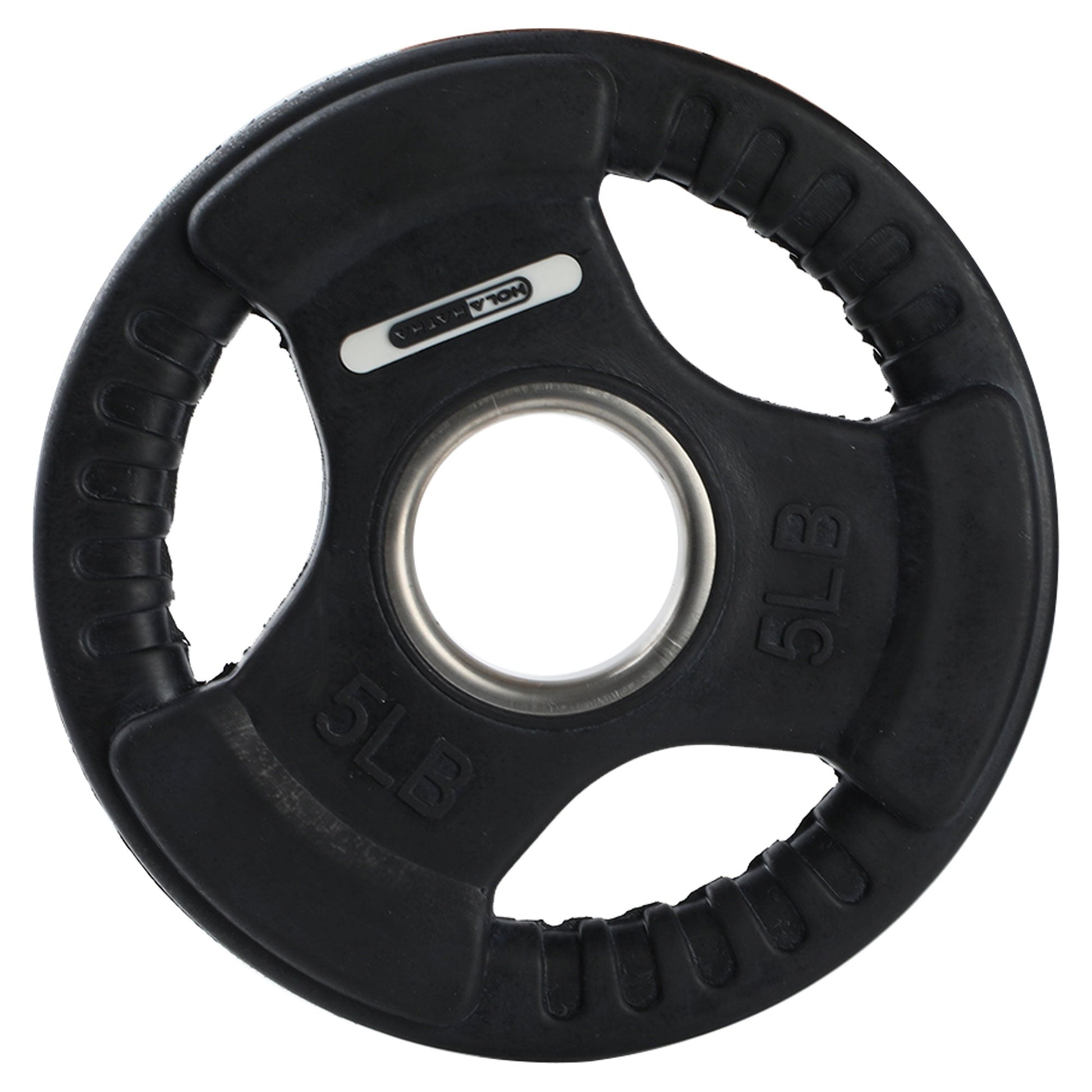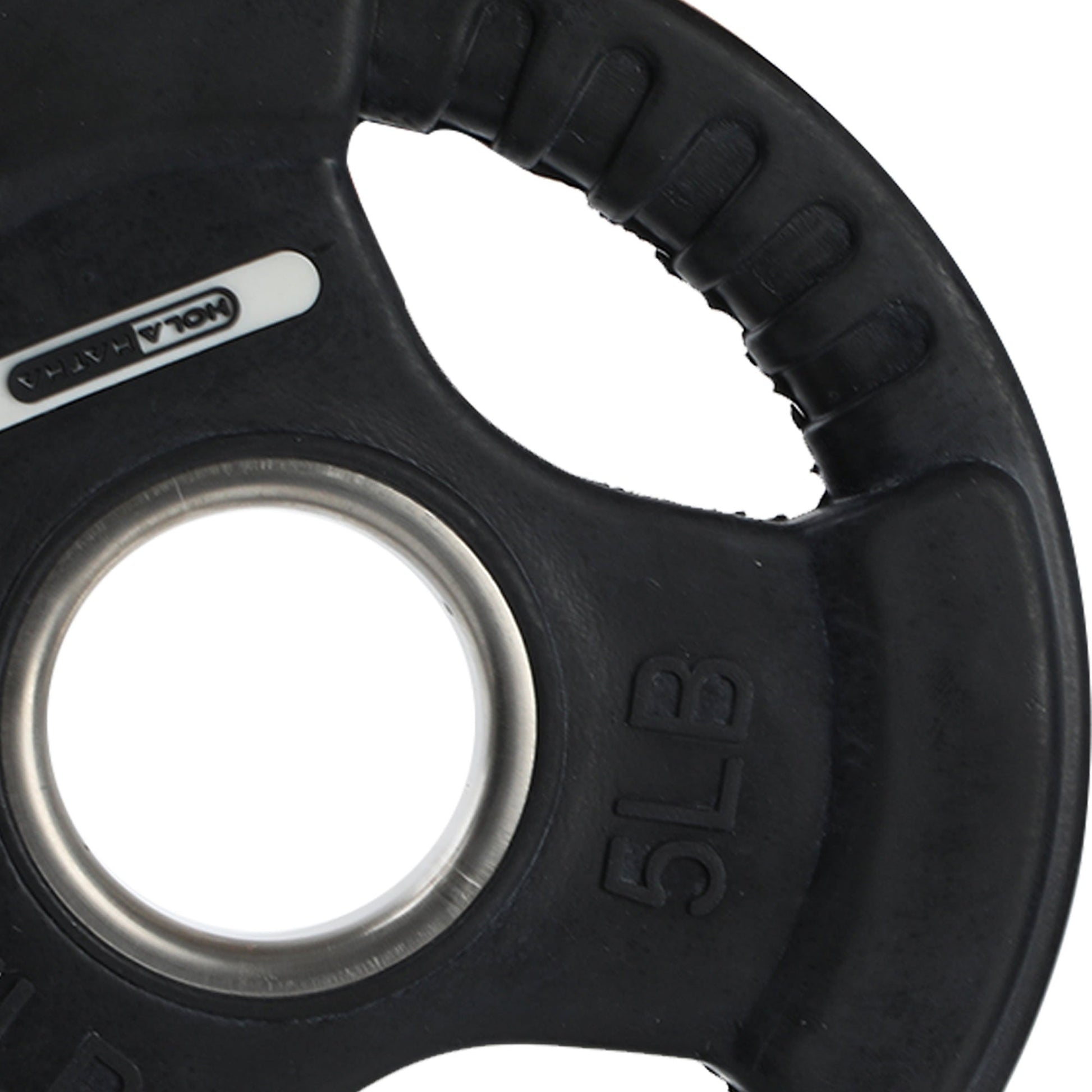 HolaHatha 5 Pound Olympic Rubber Coated Weight Plate with Handle, Black (2 Pack)