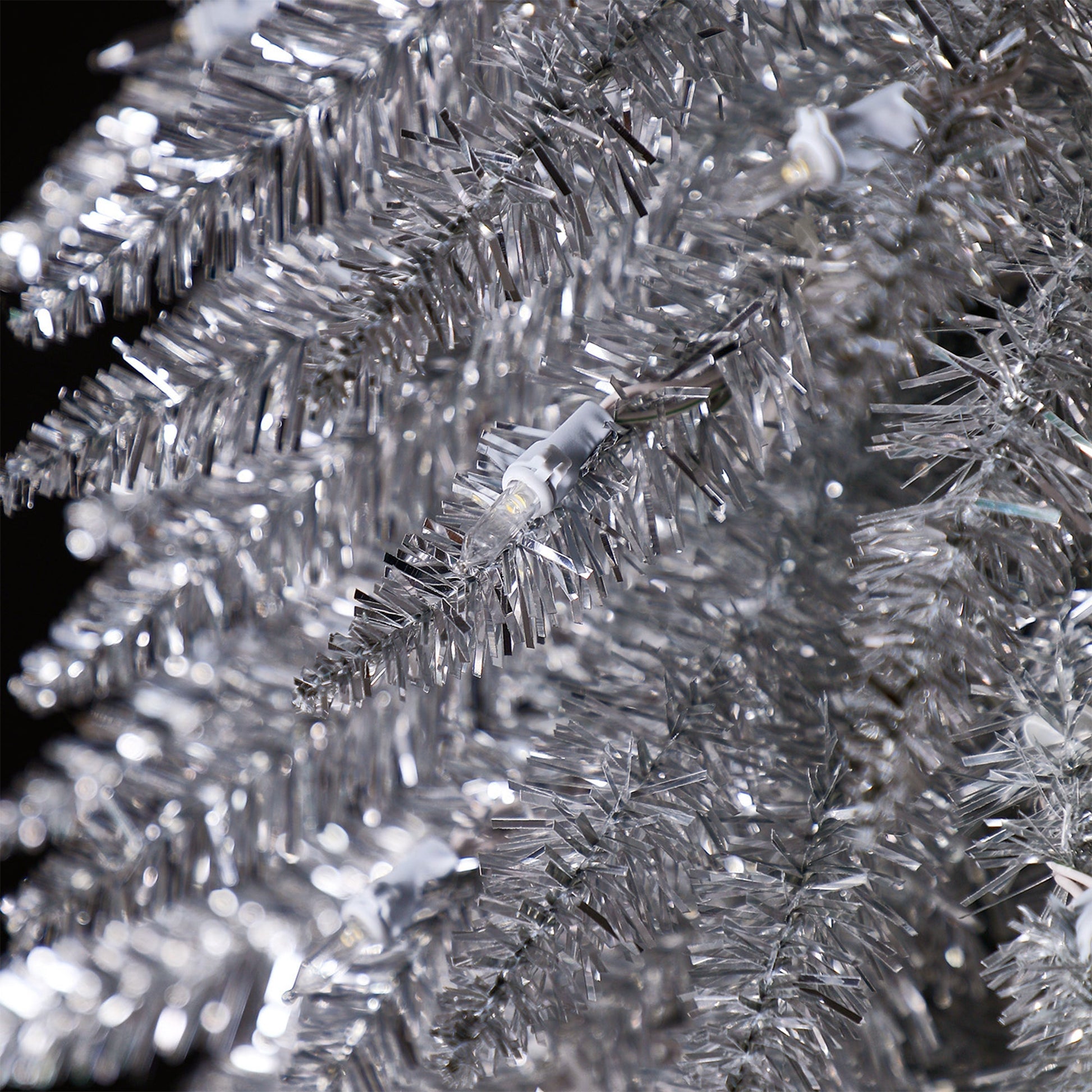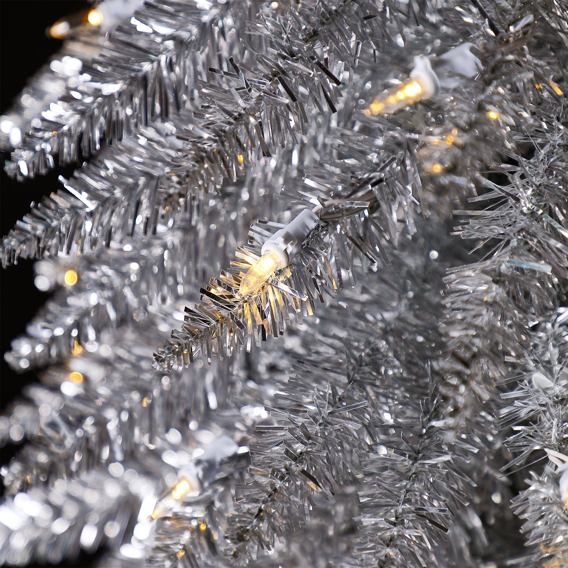 Home Heritage 5 Ft Slim Tinsel Artificial Prelit Christmas Tree & Stand, Silver