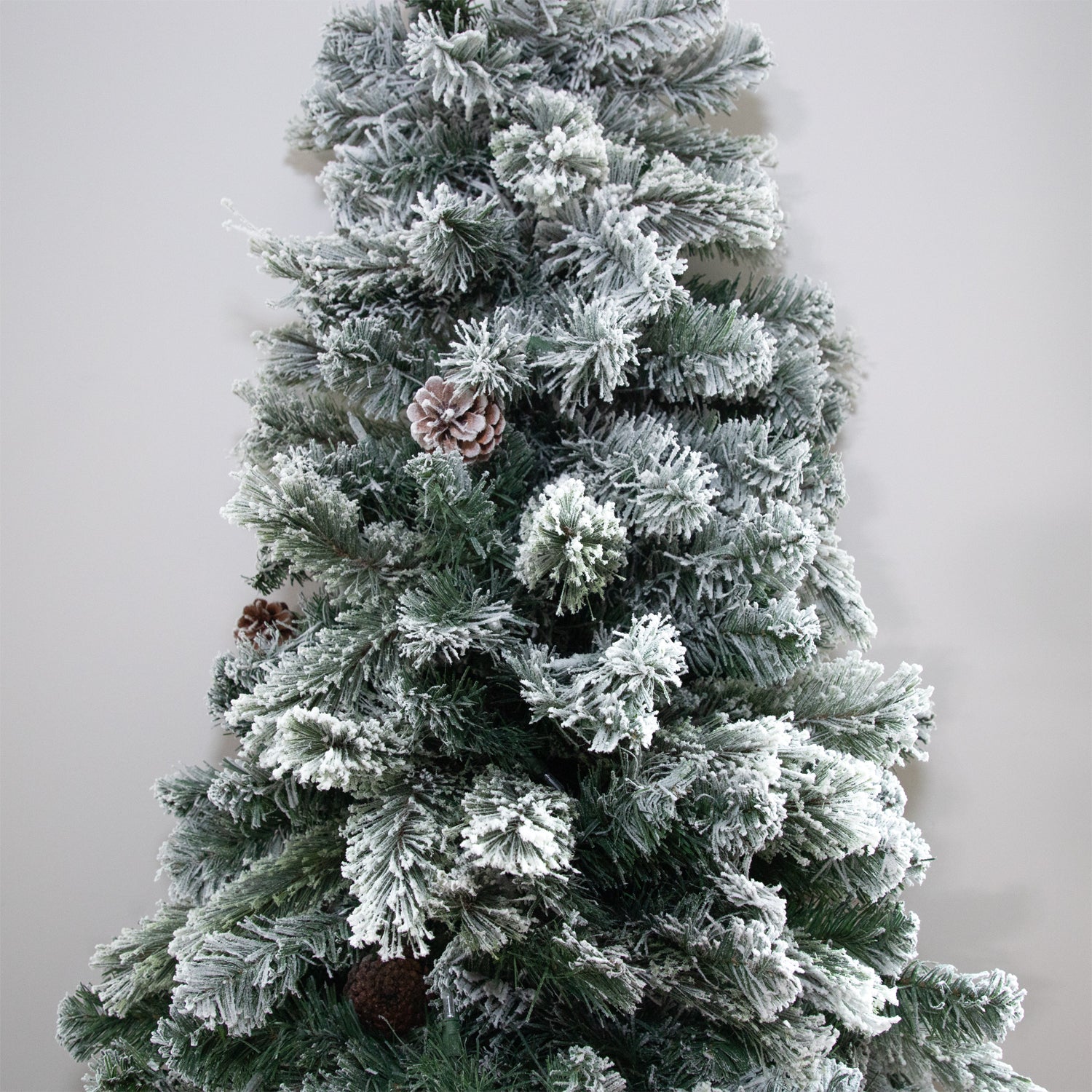 Enjoy the realistic styling of this Christmas tree. Flocked snow decorates the branches and glitters in the light. You'll feel like your home is a winter wonderland with this frosted Christmas tree. The simple, natural shape of the artificial tree makes it look like a real pine tree.