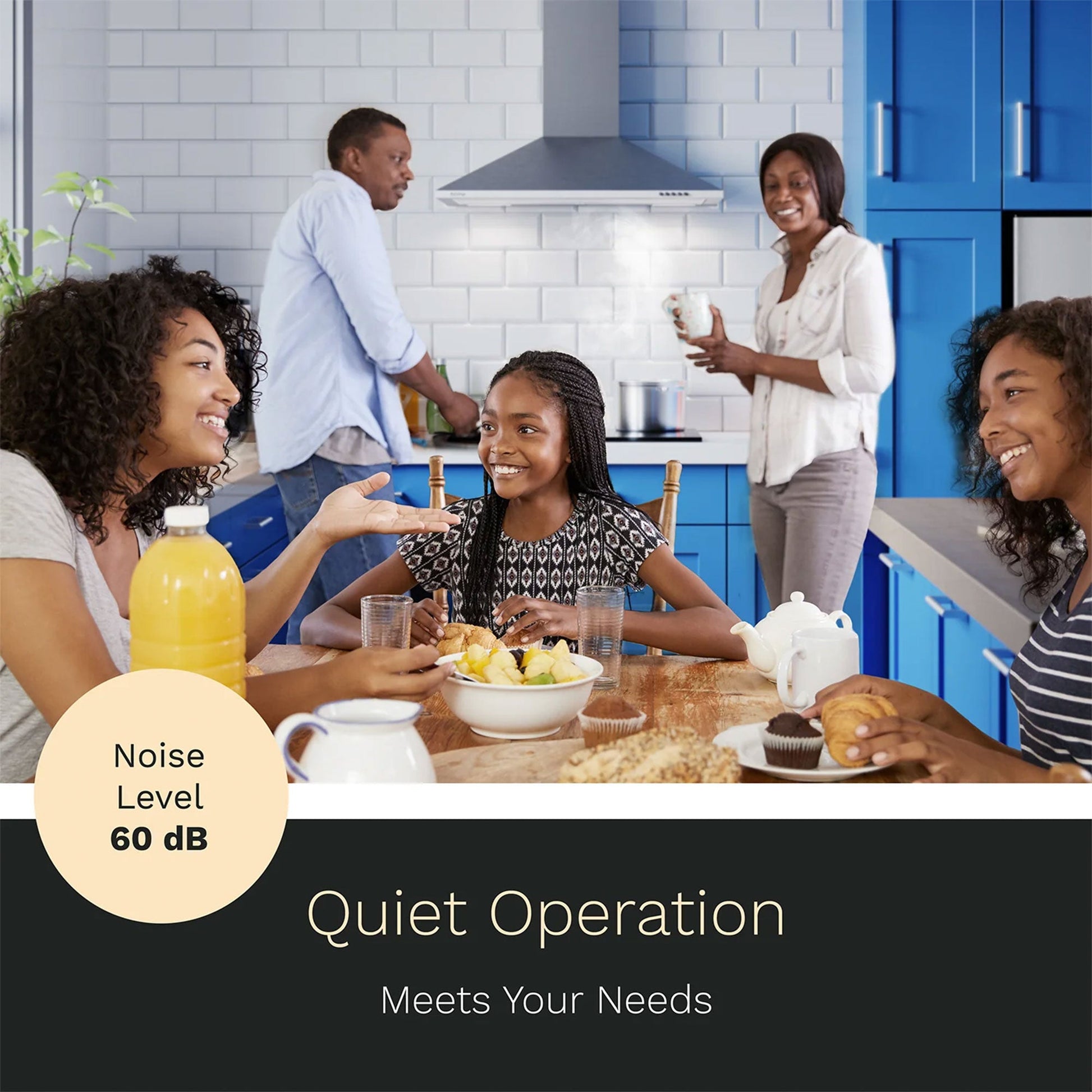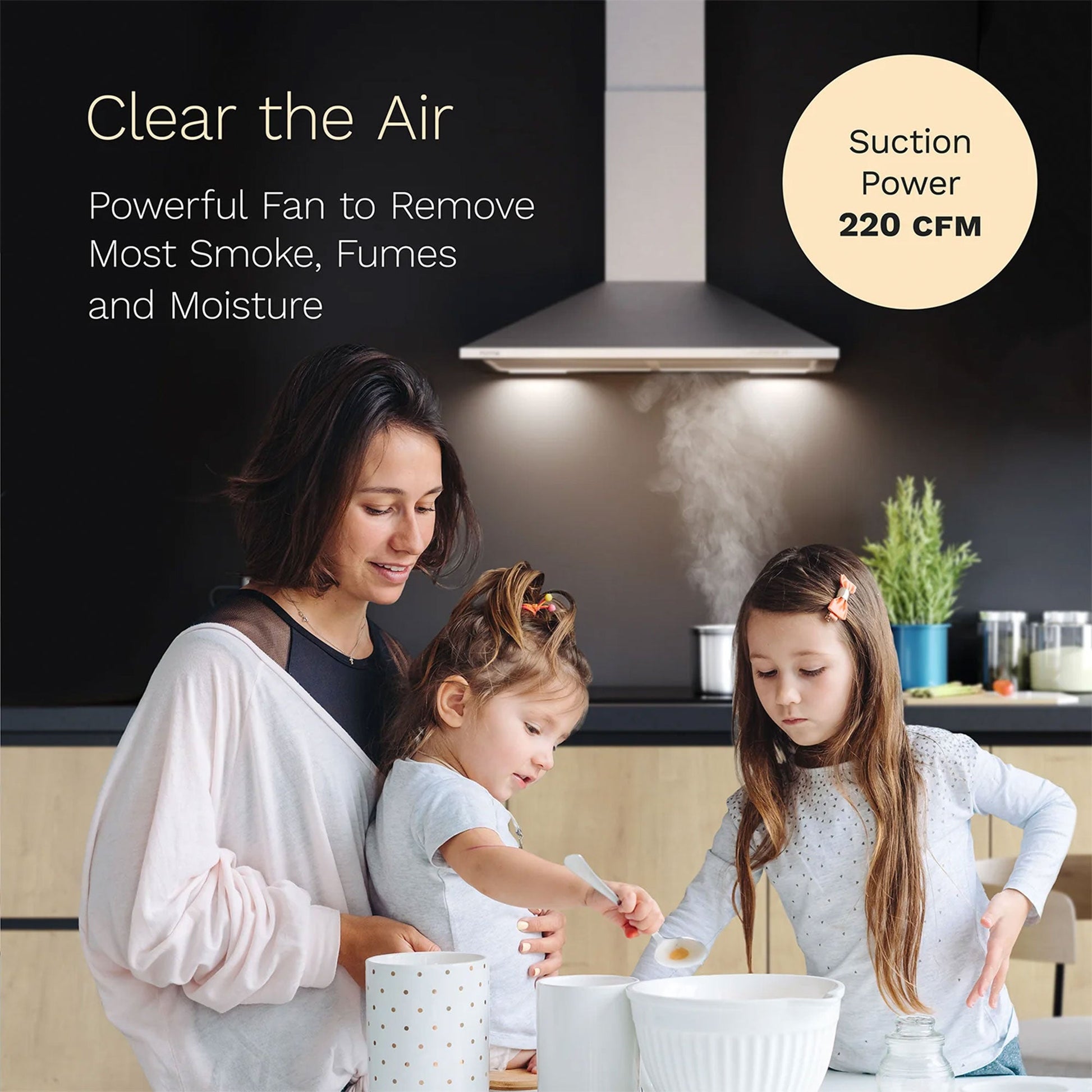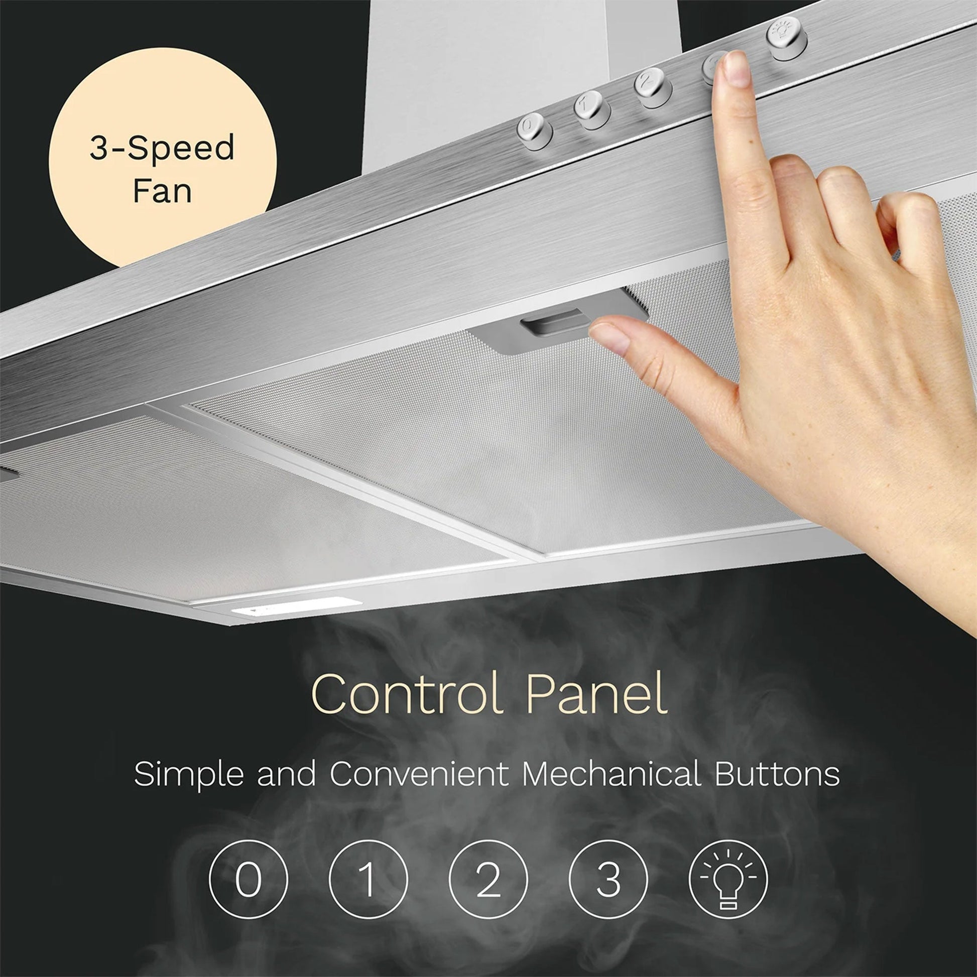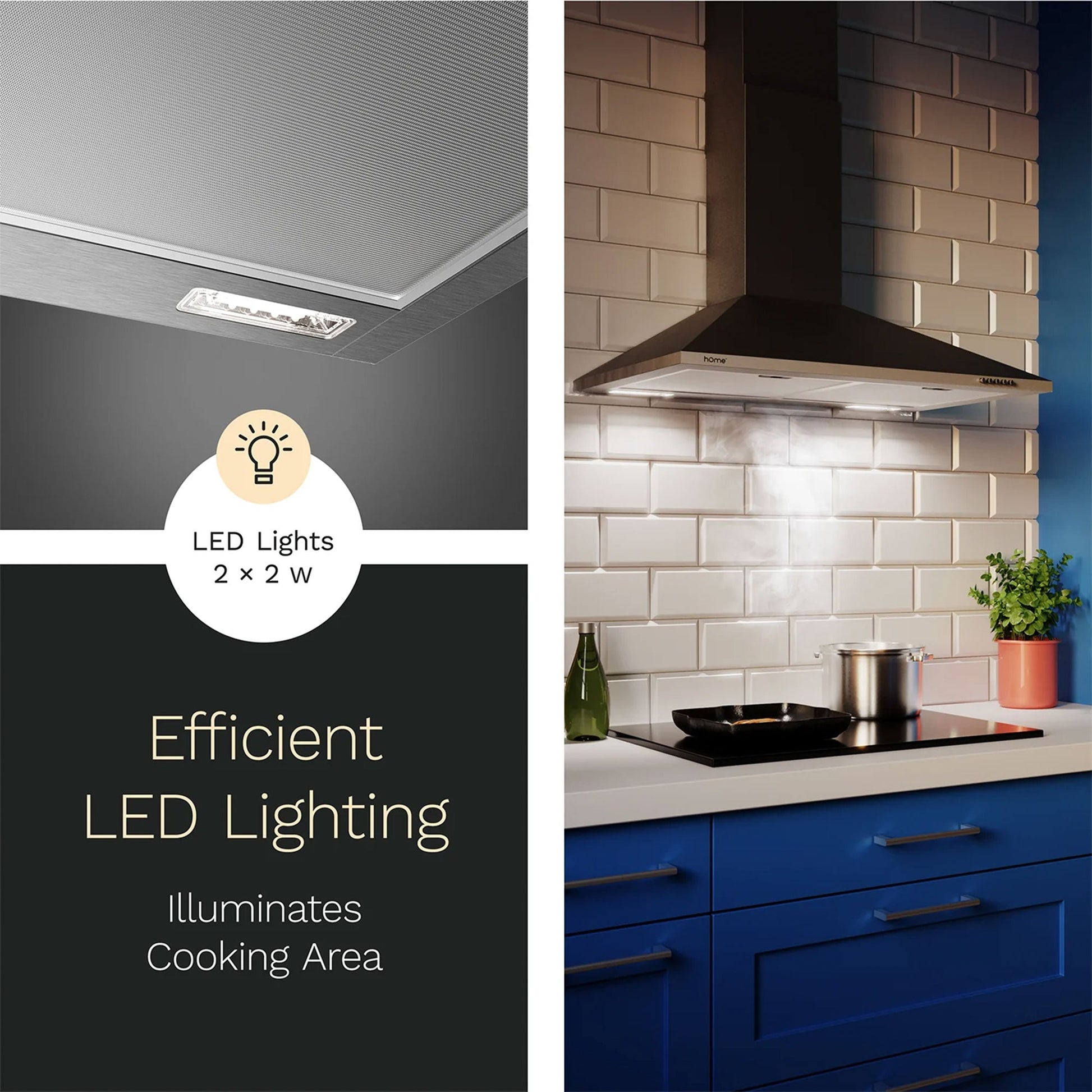- Sturdy rangehood complements kitchen interior designs with 2 bright LED lights for convenience when cooking at night