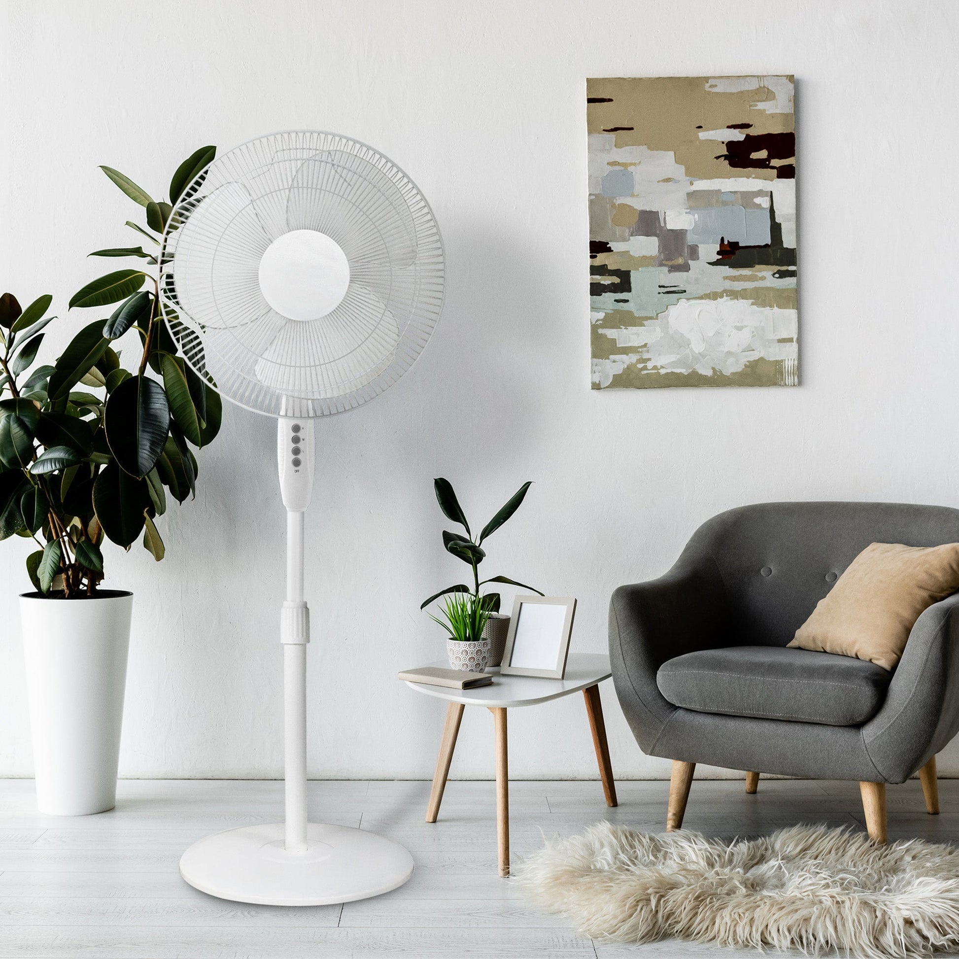 Feeling stuffy or have poor airflow in your living room or office? Introducing the HomePointe 16-Inch Stand Fan. A stylish and efficient way to keep cool during hot summer days. This stand fan comes with 3 adjustable speed settings, allowing you to choose the perfect level of a low, mid, or high cooling breeze that suits your preferences. The full-range oscillation feature ensures that the air is circulated throughout the room, reaching every corner, and making sure you stay comfortable even during the hottest days.