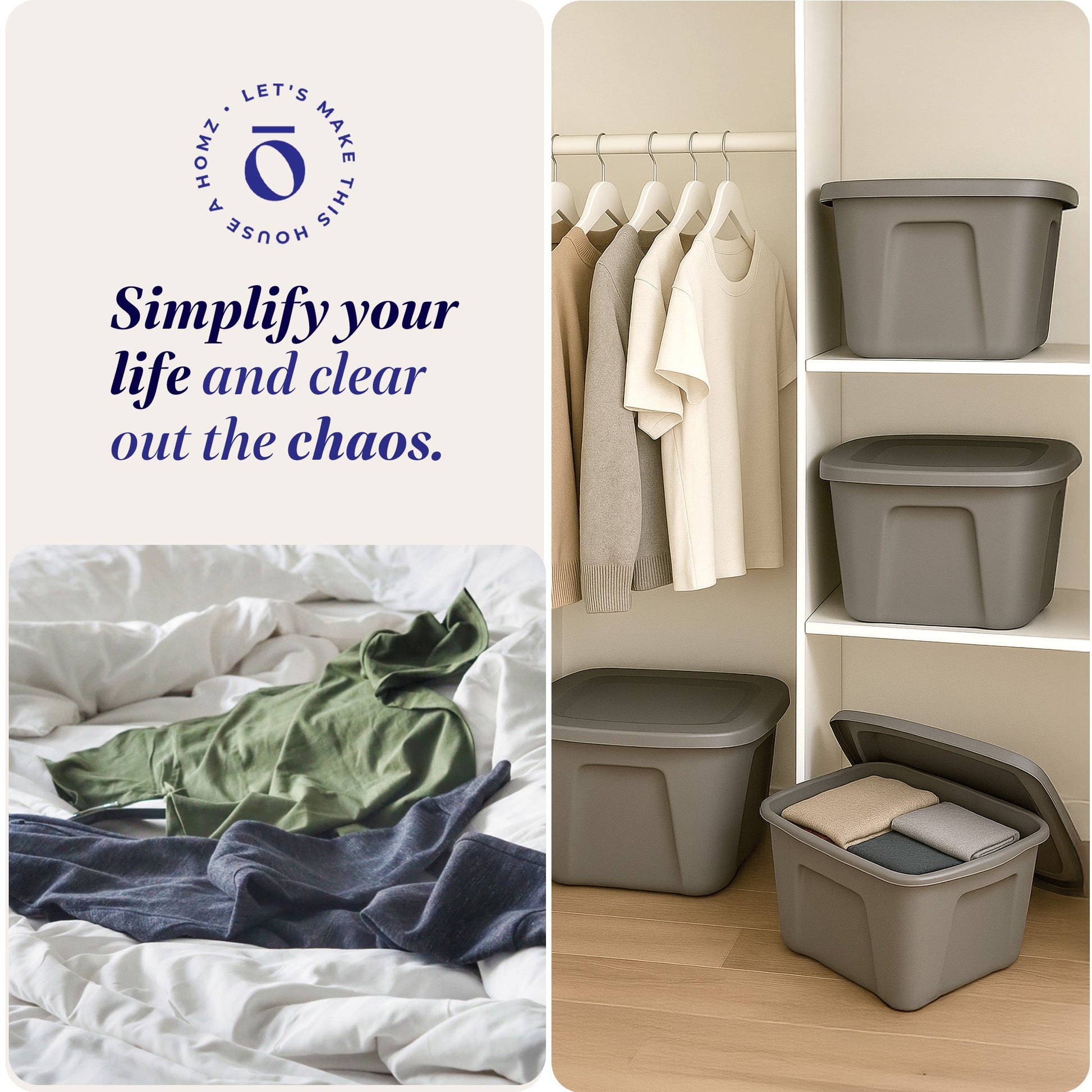 Elevate your organizational prowess with this 4-pack of Homz 10-Gallon Heavy-Duty Plastic Storage Containers.