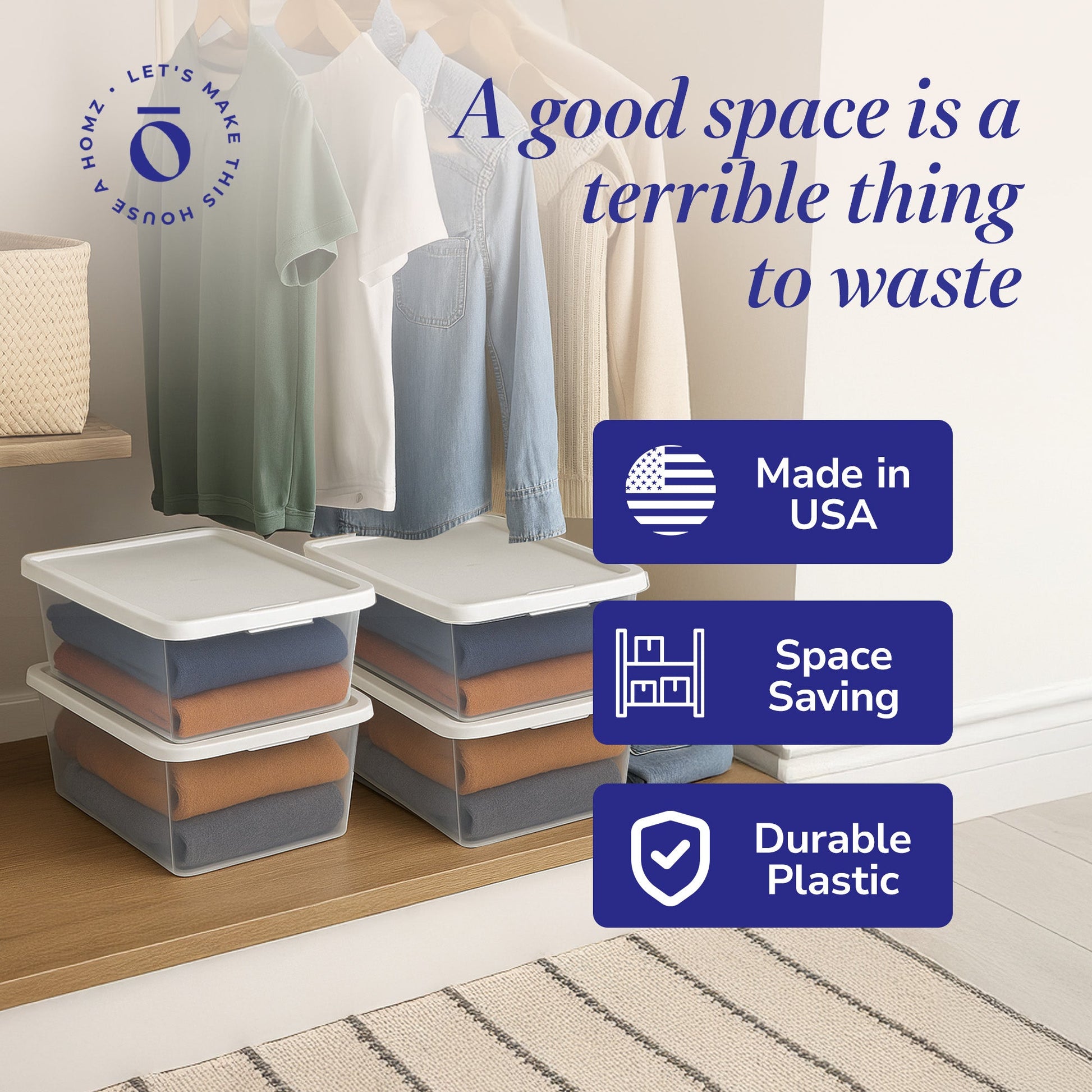 Get the most out of your space with the 4 Pack of Homz 12-Quart Snaplock Plastic Storage Container Bin. Perfect for protecting holiday decoration items, shoes, office supplies, kitchen utensils, and more.