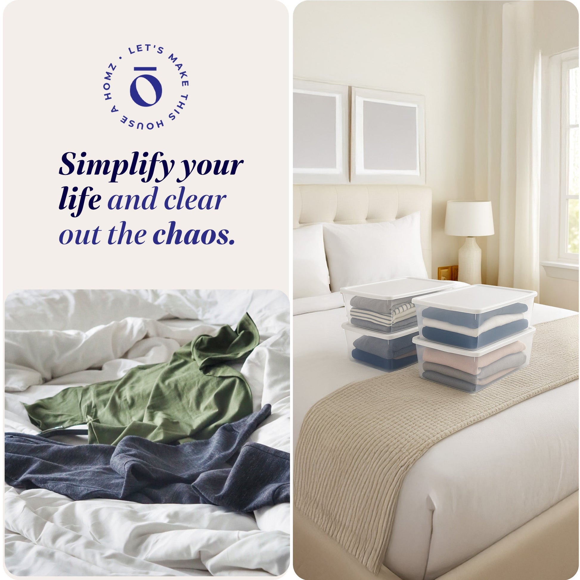 - Set of (4) 12-quart storage bins ideal for office supplies, kitchen utensils, holiday decorations, personal items, and more