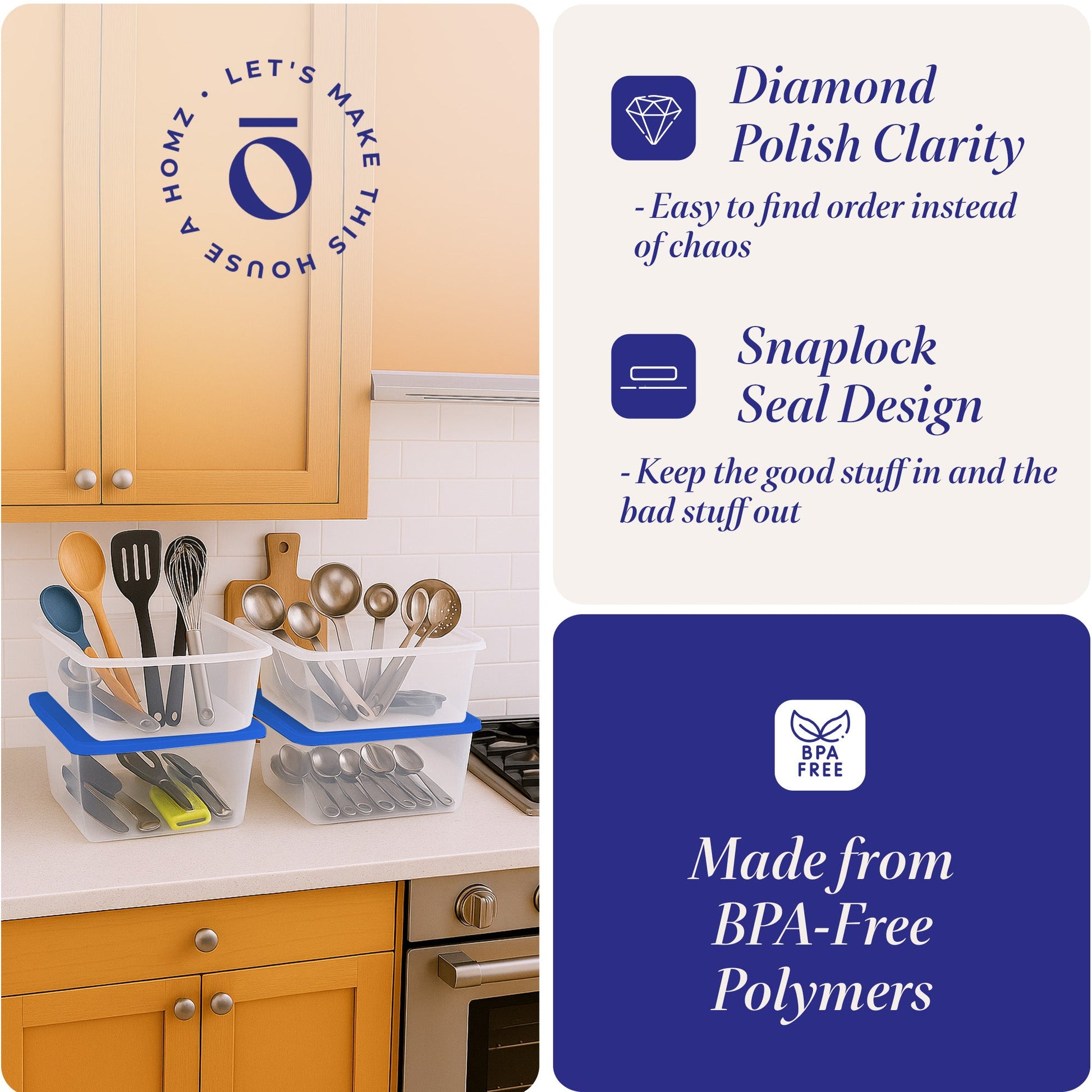 Homz 12 Qt Stackable Plastic Storage Container w/ Snaplock Lid, Blue (4 Pack)