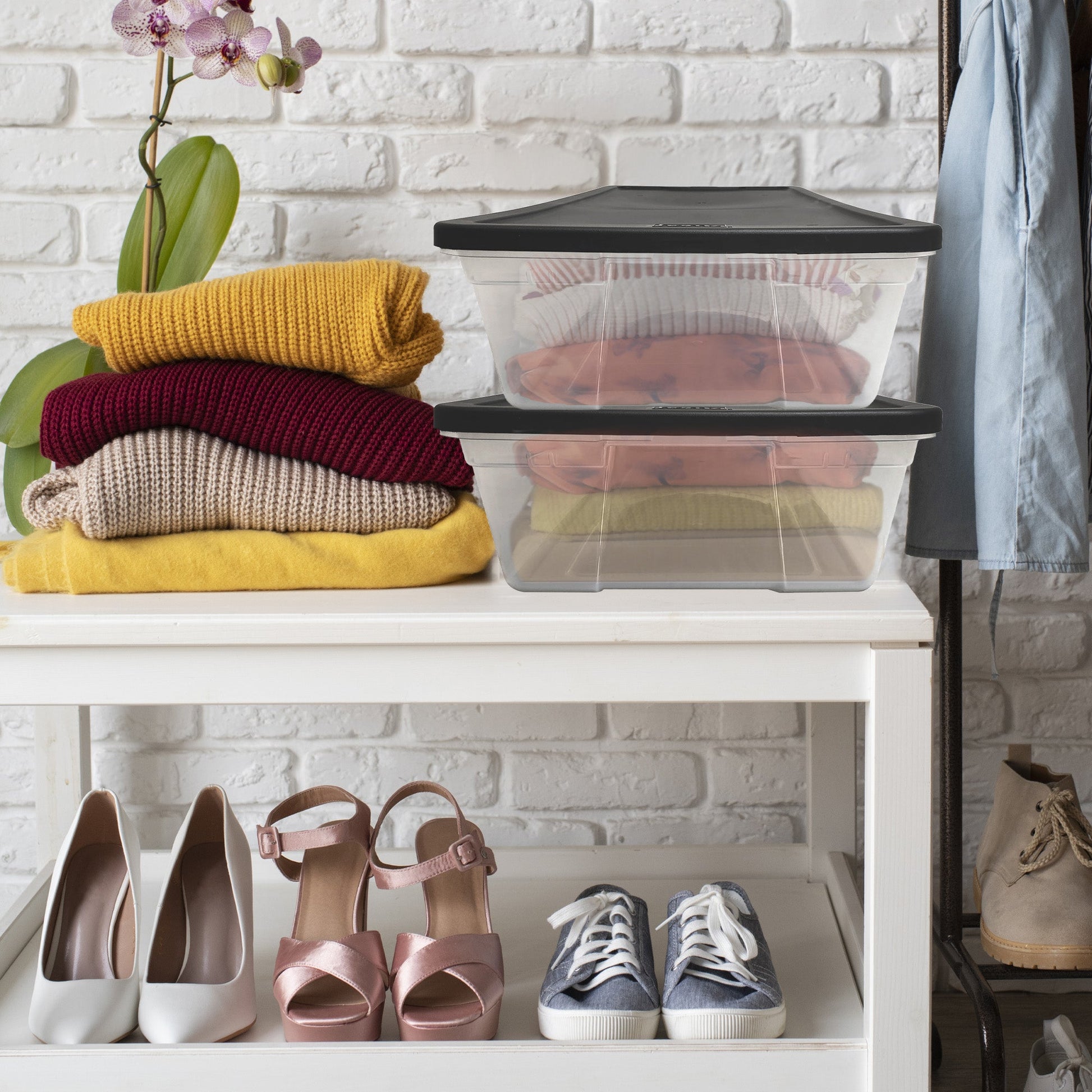 Recessed lids enable secure stacking, optimizing vertical storage capacity in your kitchen, bathroom, and closet. Organizer bins fit snugly when stored away, promoting efficient organization of clothes, blankets, small tools, and more. The modular box design optimizes storage space, allowing you to stack and nest each bin on top of the other. Ideal for bedroom, bathroom, kitchen, college dorms or off-season storage, these storage containers are designed for extended and enduring utility. Each bin has interior dimensions of 12.66 inches long by 29.68 inches wide by 5.53 inches tall and an exterior dimension of 15.5 inches long by 34.38 inches wide by 6 inches tall, great for underbed storage.