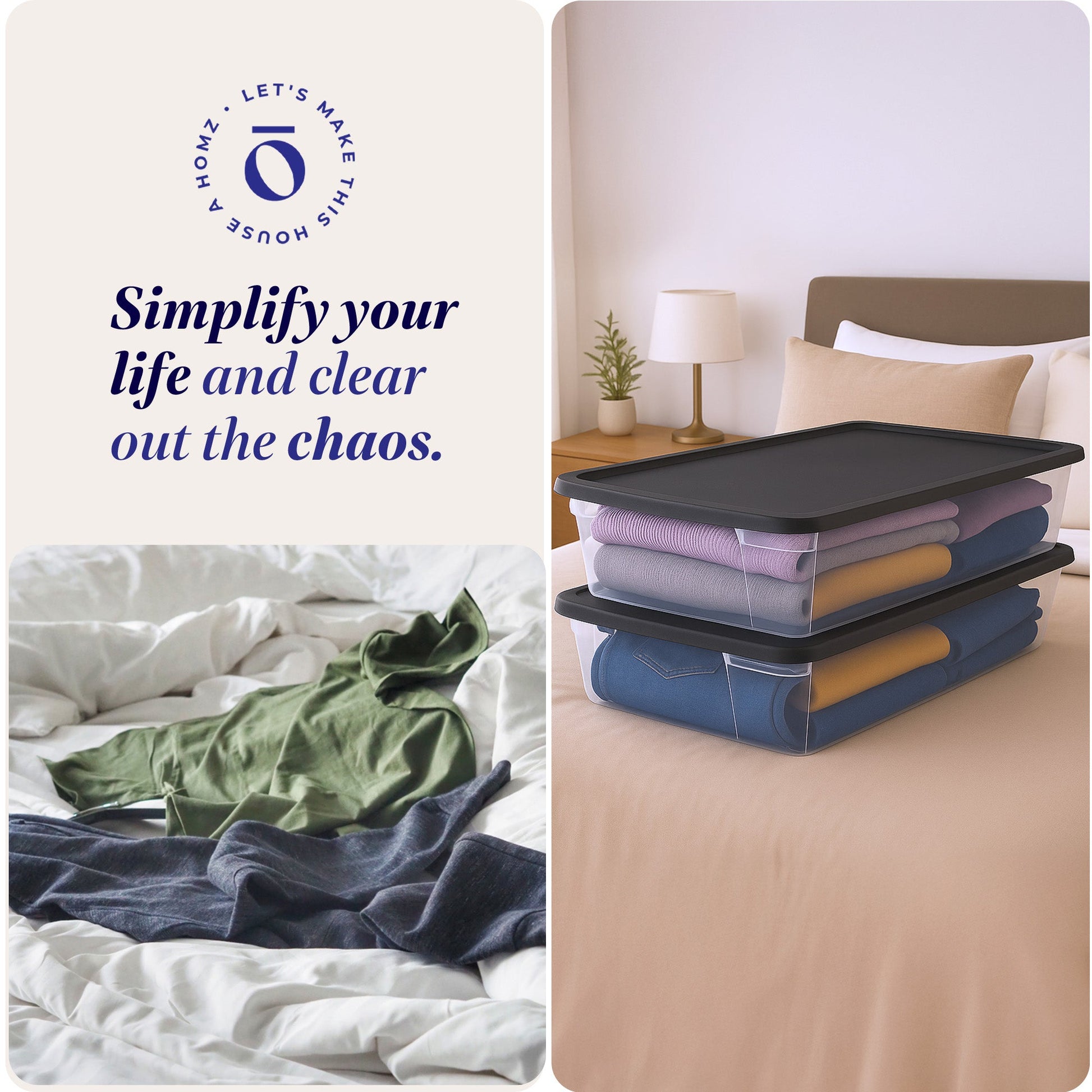 Homz 41 Quart Stackable Plastic Under Bed Storage Containers with Lid, (2 Pack)