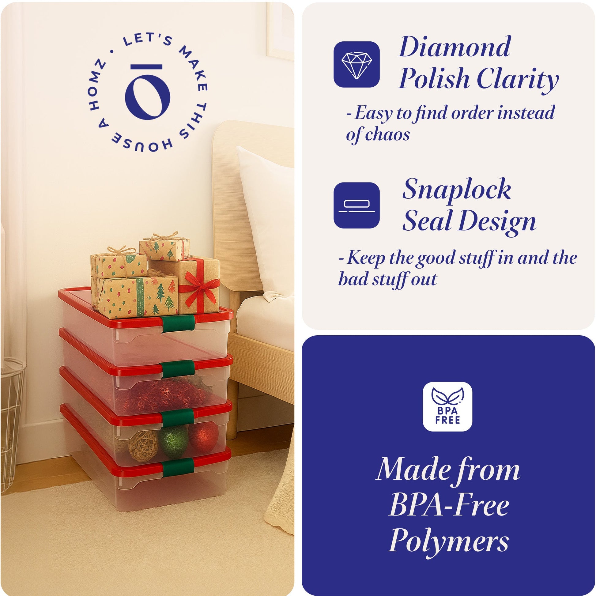 Save yourself from the stress that comes with constant mess with the HOMZ 60-Quart Latching Holiday Underbed Storage Container 2 Pack.