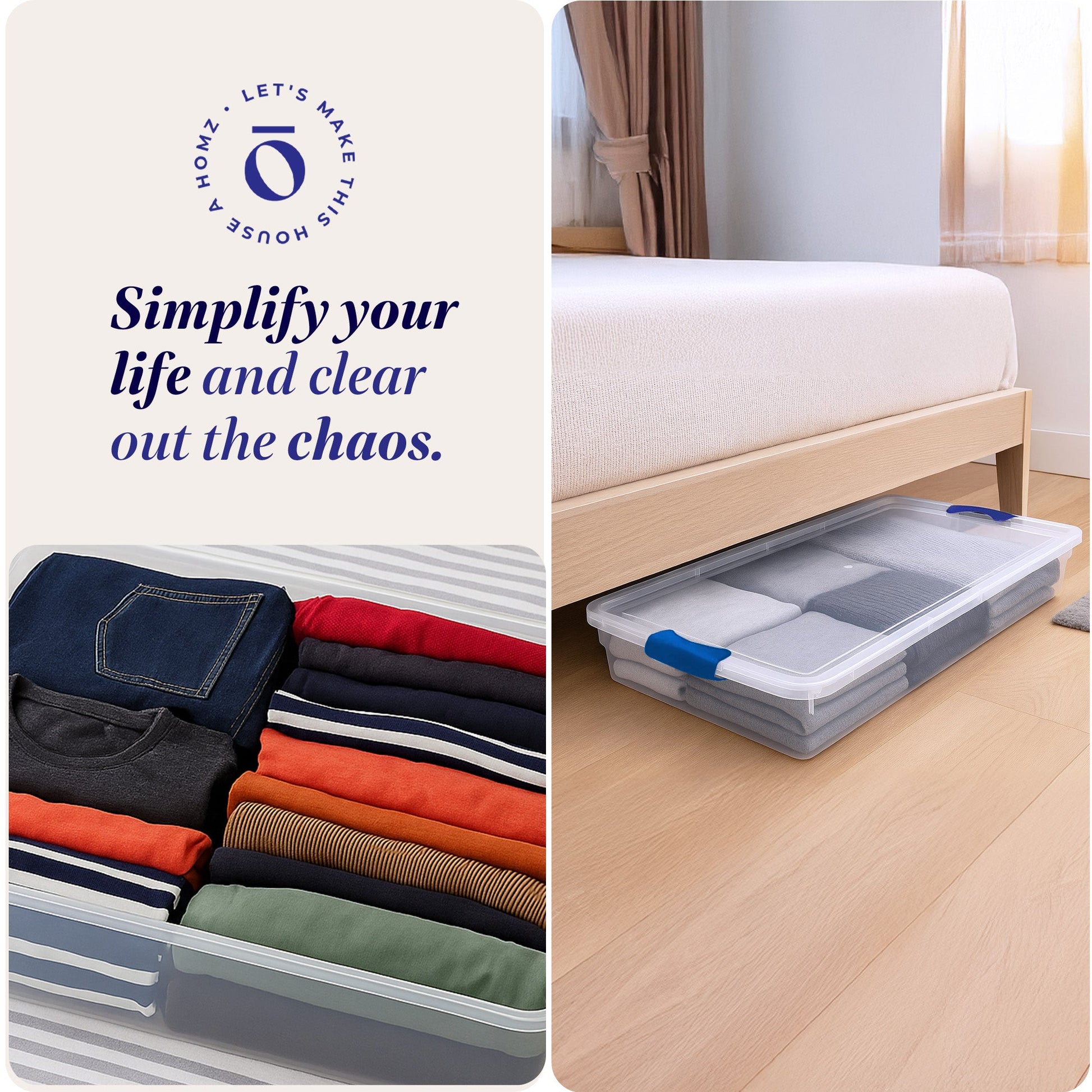 Homz 60 Quart Underbed Secure Latching Clear Plastic Storage Container, (2 Pack)