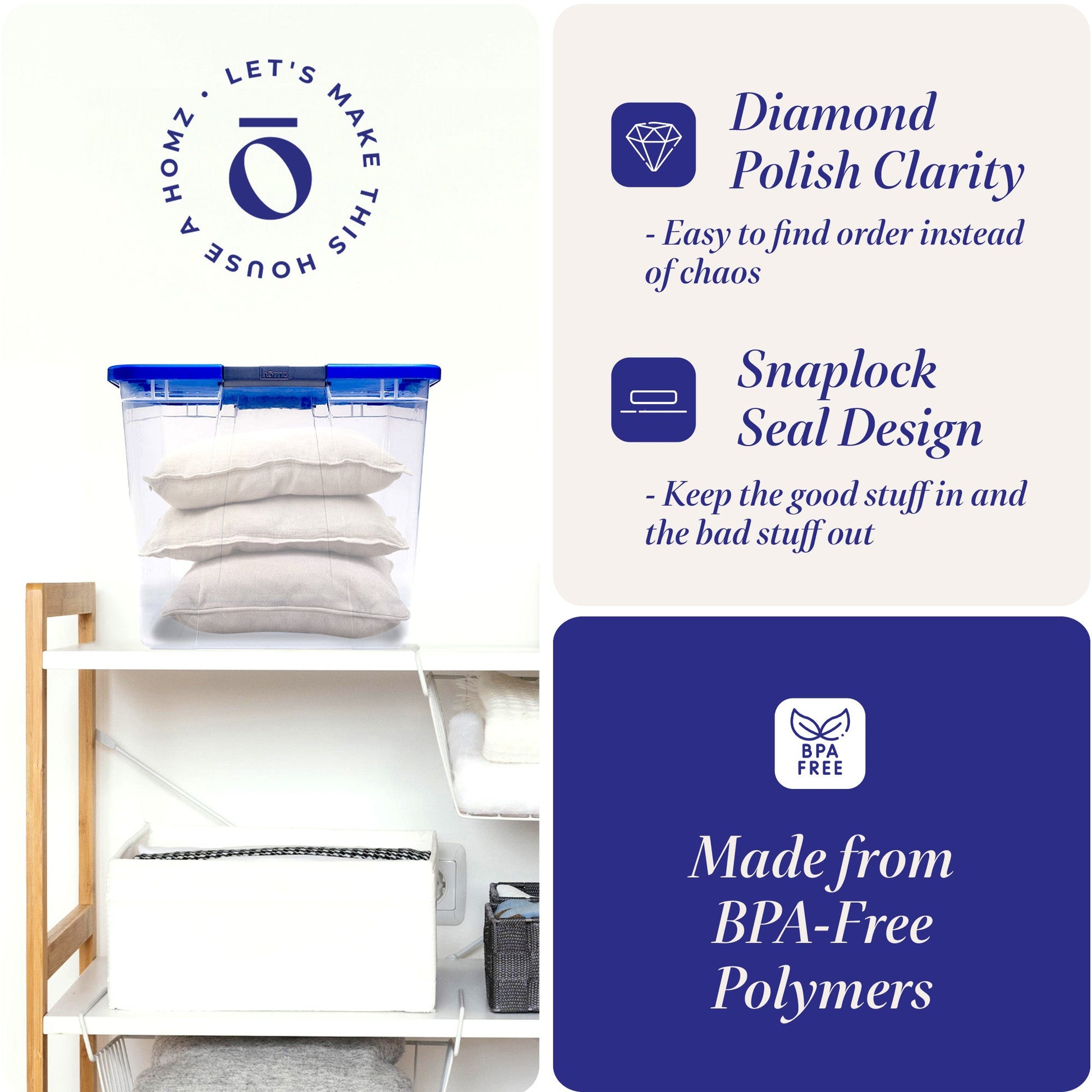 Homz 64 Qt Secure Latch Large Clear Stackable Storage Container w/ Lid (2 Pack)