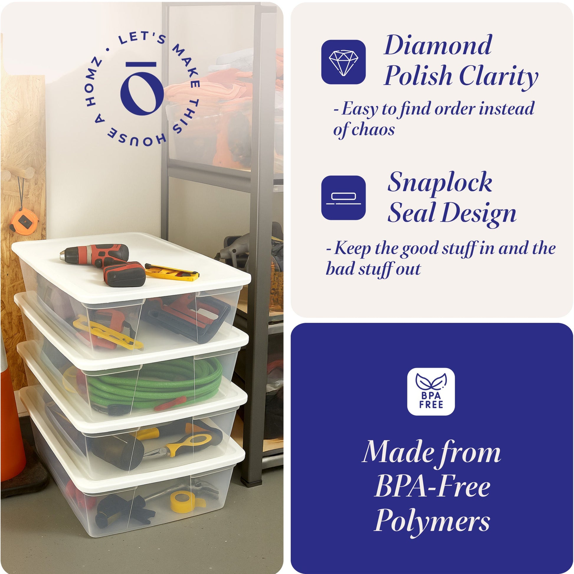 Homz Snaplock 41 Qt Stackable Plastic Storage Container w/Latching Lid (4 Pack)