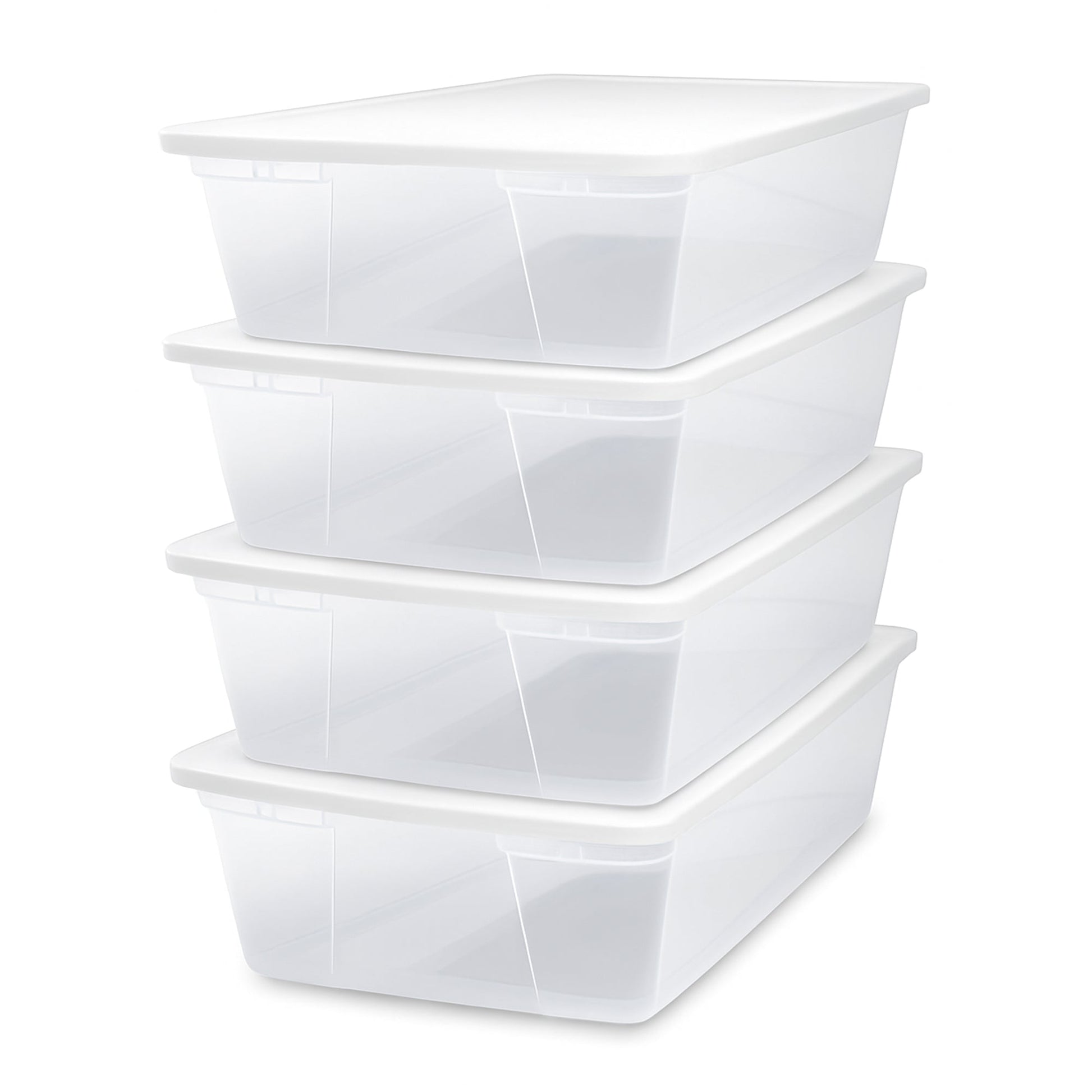 Get the most out of your space with the 4-pack of Homz Plastic Storage Containers. Ideal for storing away holiday decor, shoes, office supplies, kitchen utensils, and so much more, the opportunities with these totes are endless.