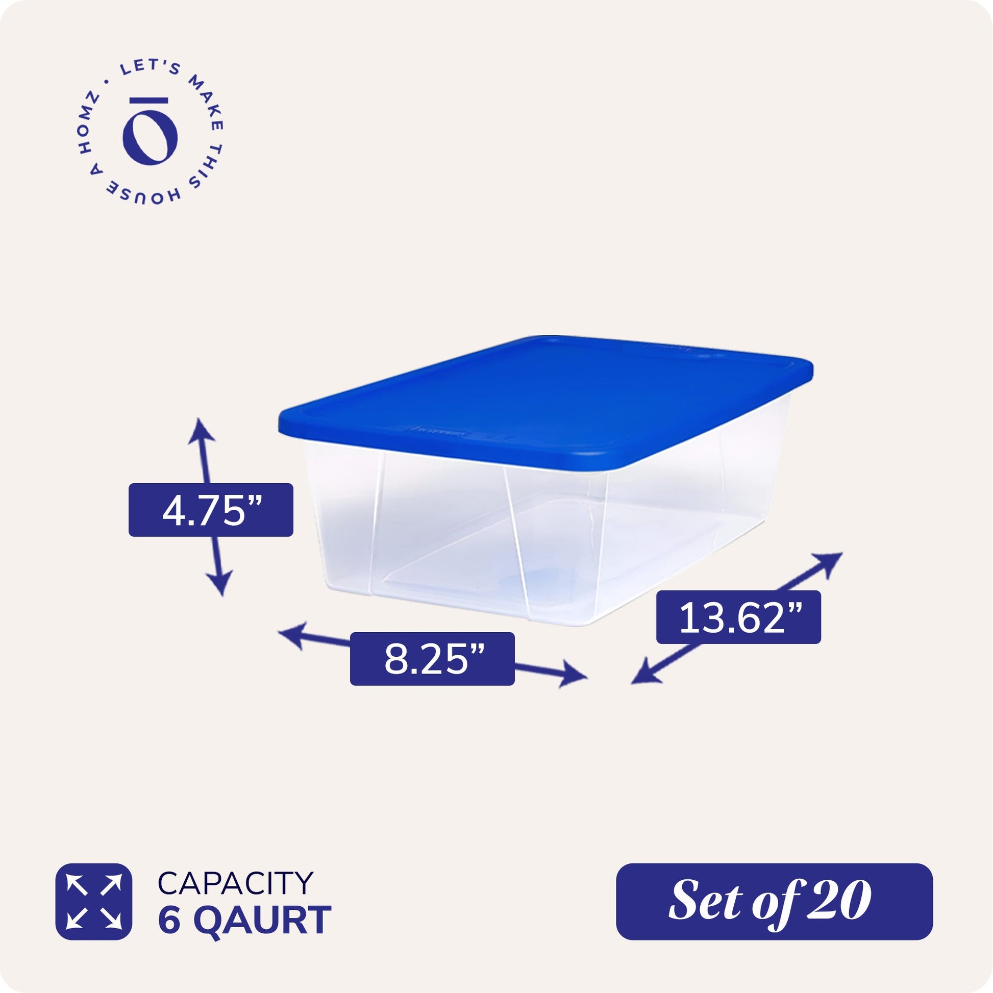 Homz Snaplock 6 Qt Stackable Plastic Storage Container w/Lid, Blue (20 Pack)
