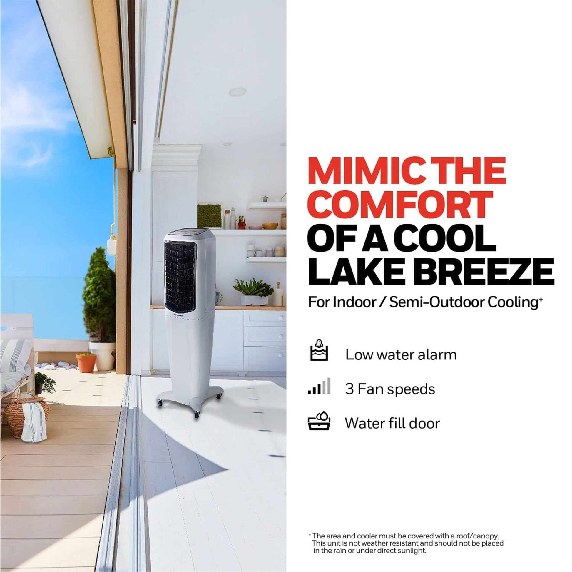 - Comes with a remote control, low water alarm, easy-access water fill door, washable dust filter, and Honeycomb Cooling media, ensuring simple operation and maintenance