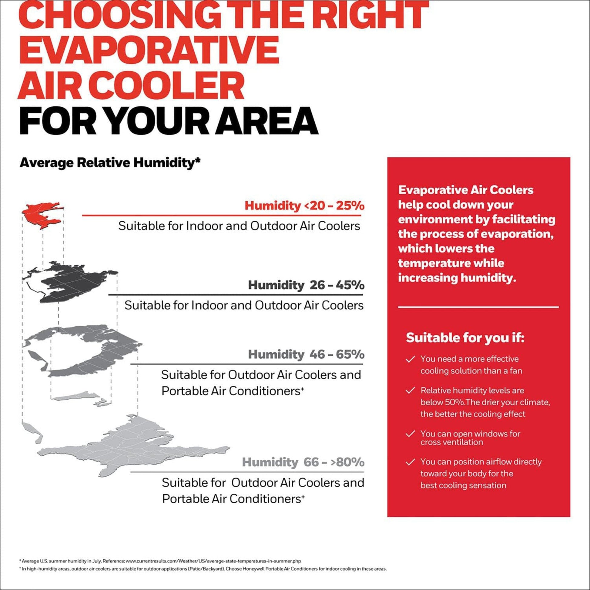 - Choose between evaporative cooling or a gentle fan breeze in warm weather, keeping your air comfortably hydrated