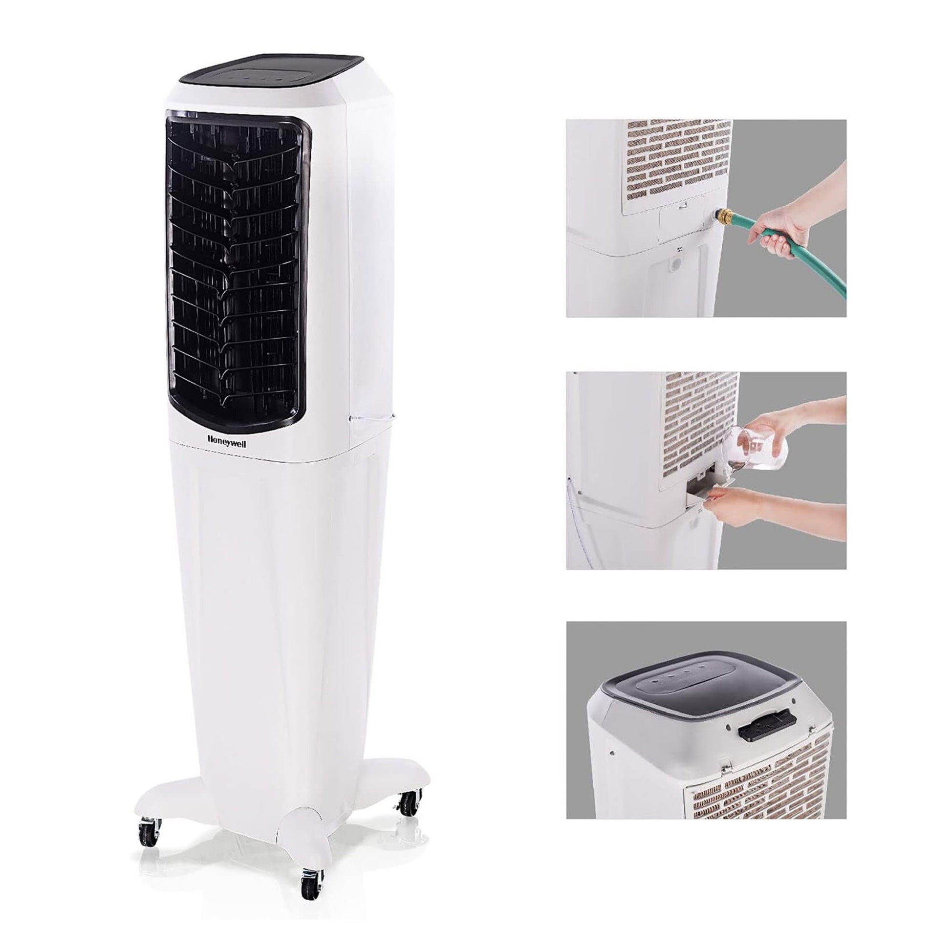 Honeywell Portable Evaporative Tower Cooler with Fan, Humidifier & Remote, White