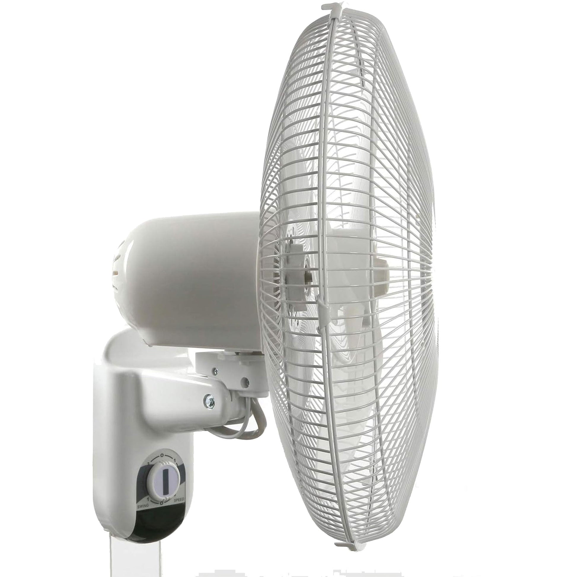 Crafted with rugged all-metal construction and a sleek white painted finish, this fan exudes durability and style. It also features an option to lock in a static position to limit airflow to one steady direction. Take control of your comfort with the oscillating fan's versatile features. The hanging pull cords mean you can install the fan high on the wall yet still access and control the 3-speed options. Choose from 3-speed settings, allowing you to tailor the airflow to your preference. The 90-degree oscillation controls a customizable experience, ensuring every corner of your space receives optimal ventilation. The included 5-foot, 120-volt power cord adds convenience, giving you flexibility in placement.