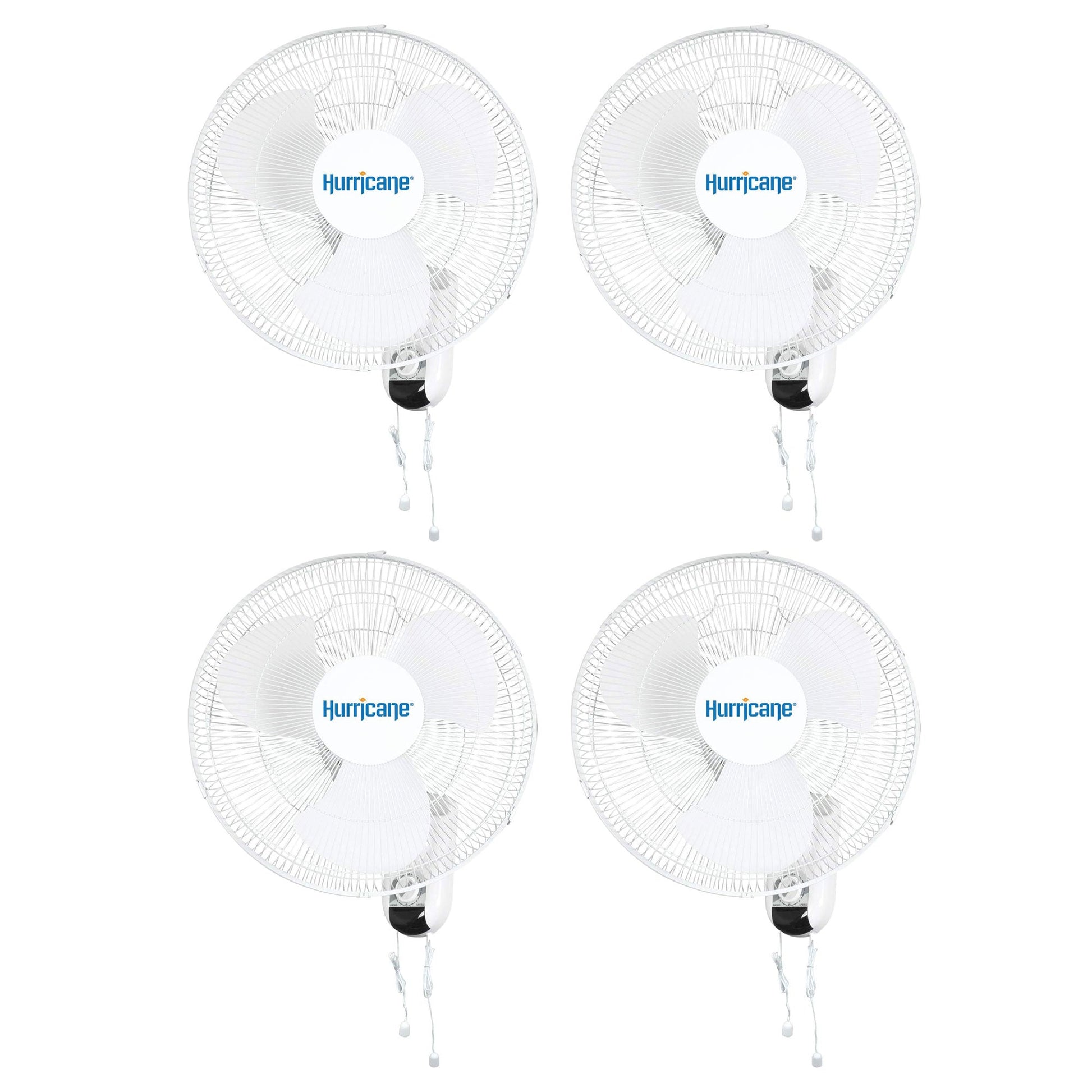 Enhance your environment with the 4-pack of 16-inch Classic Corded Electric Oscillating Wall Mount Fan from Hurricane where performance, durability, and versatility converge for superior air circulation in any space.