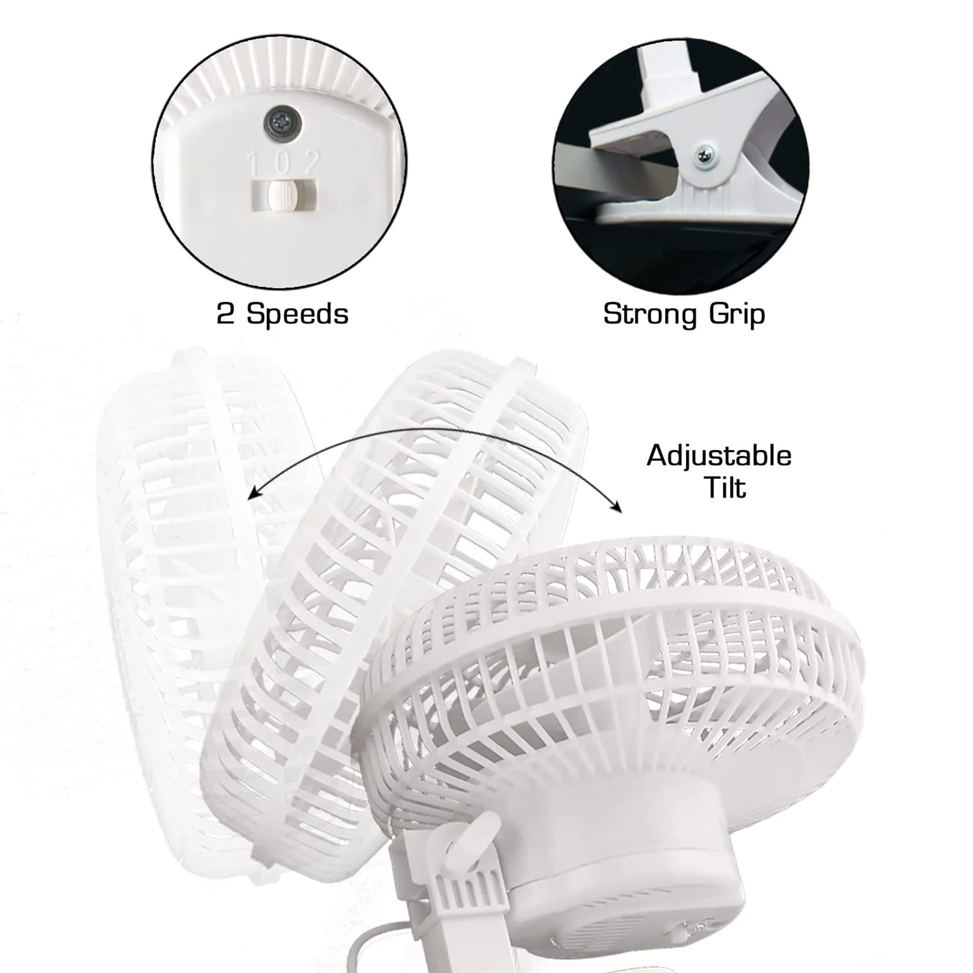 Hurricane Classic 6" Clip Fan, 2 Speed Desk Table Fan w/ Adjustable Tilt, White