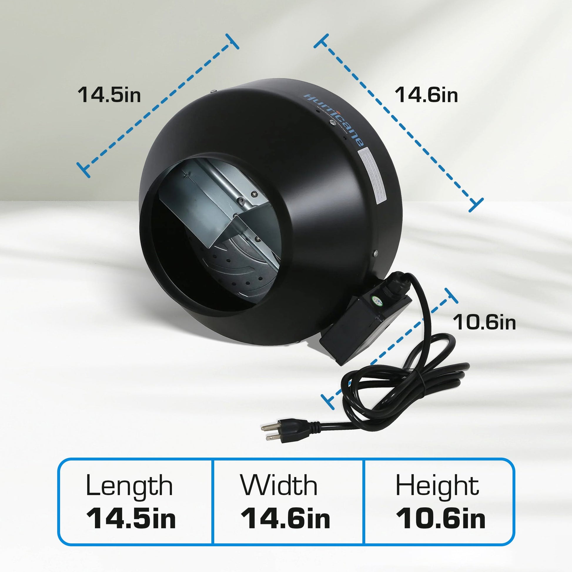Unleash the cyclonic force of the Hurricane Commercial Grade Inline Fan, a formidable 8-inch powerhouse boasting a staggering 745 CFM. This inline marvel redefines high performance with its quality prowess. Encased in steel housing adorned with a robust powder-coated finish, this fan is not just robust, it's an industrial aesthetic statement.