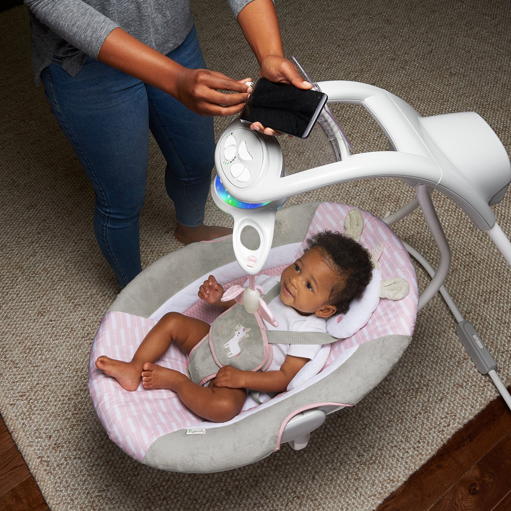 Ingenuity InLighten Baby Electric Cradling Swing Rocker Chair, Flora the Unicorn