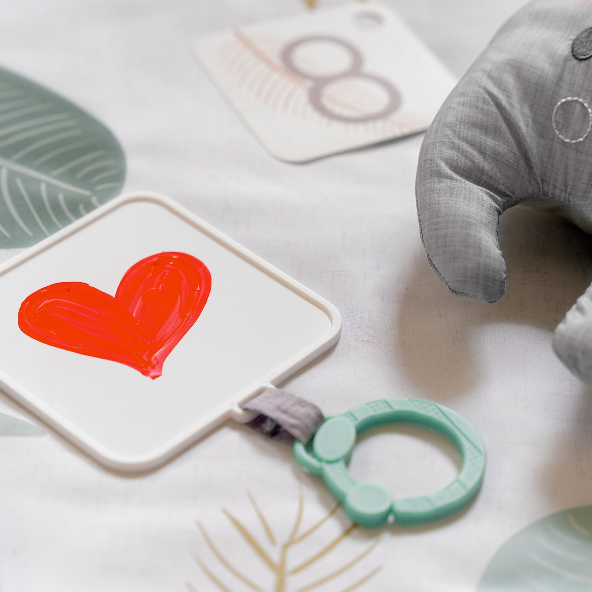 - Stimulate your baby's senses with 5 engaging detachable toys, including a tummy time elephant pillow, mirror, natural wood ring, silicone toy, and sensory tags