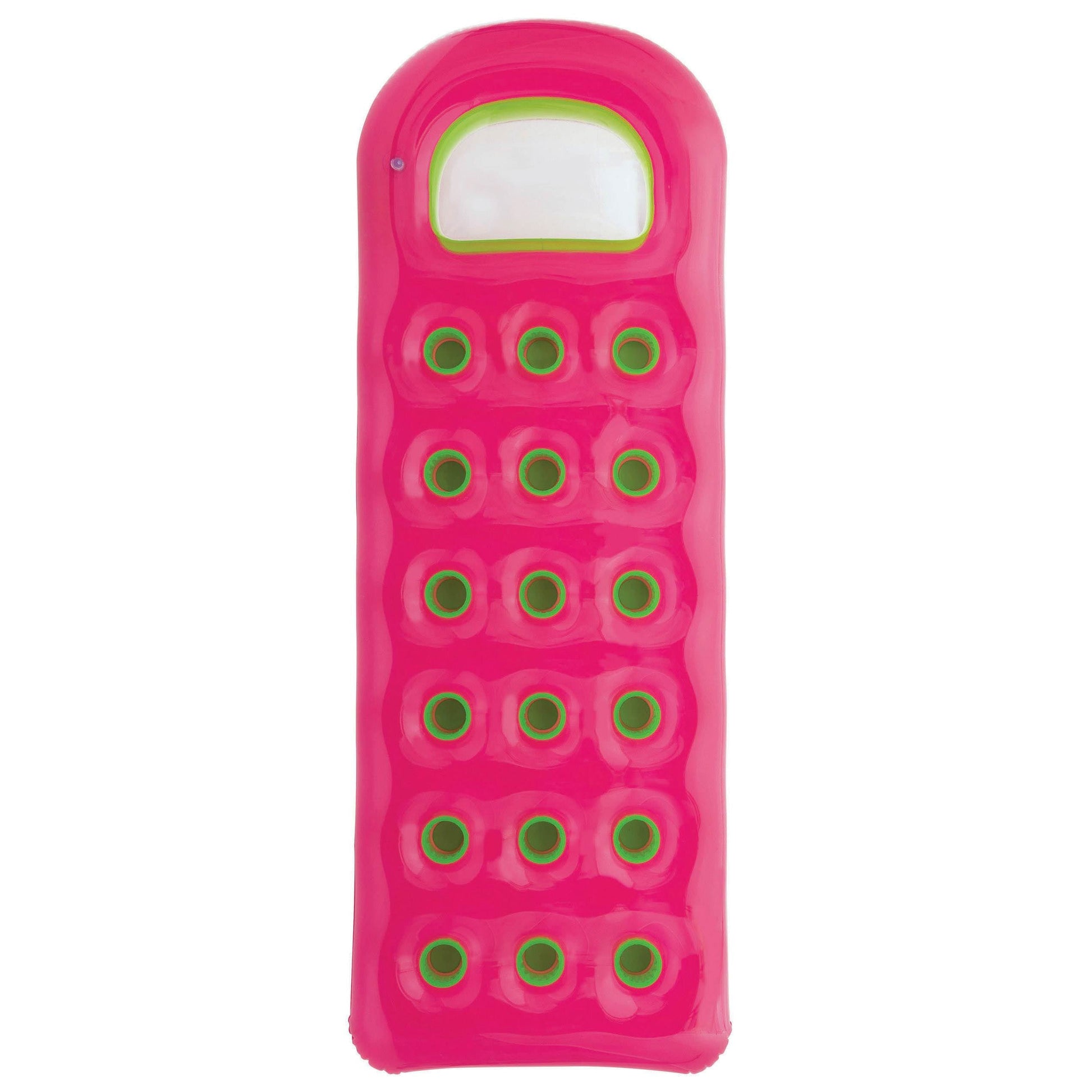 Soak up the rays while relaxing on the Intex Pool Lounger. Featuring a comfortable built in pillow and durable vinyl construction, the pockets even double as cup holders. Its coil beam style air mattress is supportive and comfortable, and its 11 gauge vinyl top and bottom make it extra durable. This floating lounge is the right choice for a warm day out on the water!