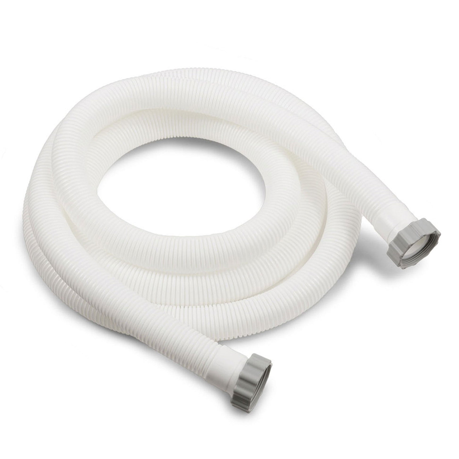Designed for use with various sizes of Intex above-ground pools and pool equipment, this pool maintenance accessory is quite versatile, giving you peace of mind and making the search for replacement attachments and parts a lot easier. This pump hose allows water to flow from your existing Intex pump or filter pump back through the side of your Intex pool and features threaded nuts on both ends for a secure fit. The plastic hose measures 1.5 inches in diameter and 15 feet long.