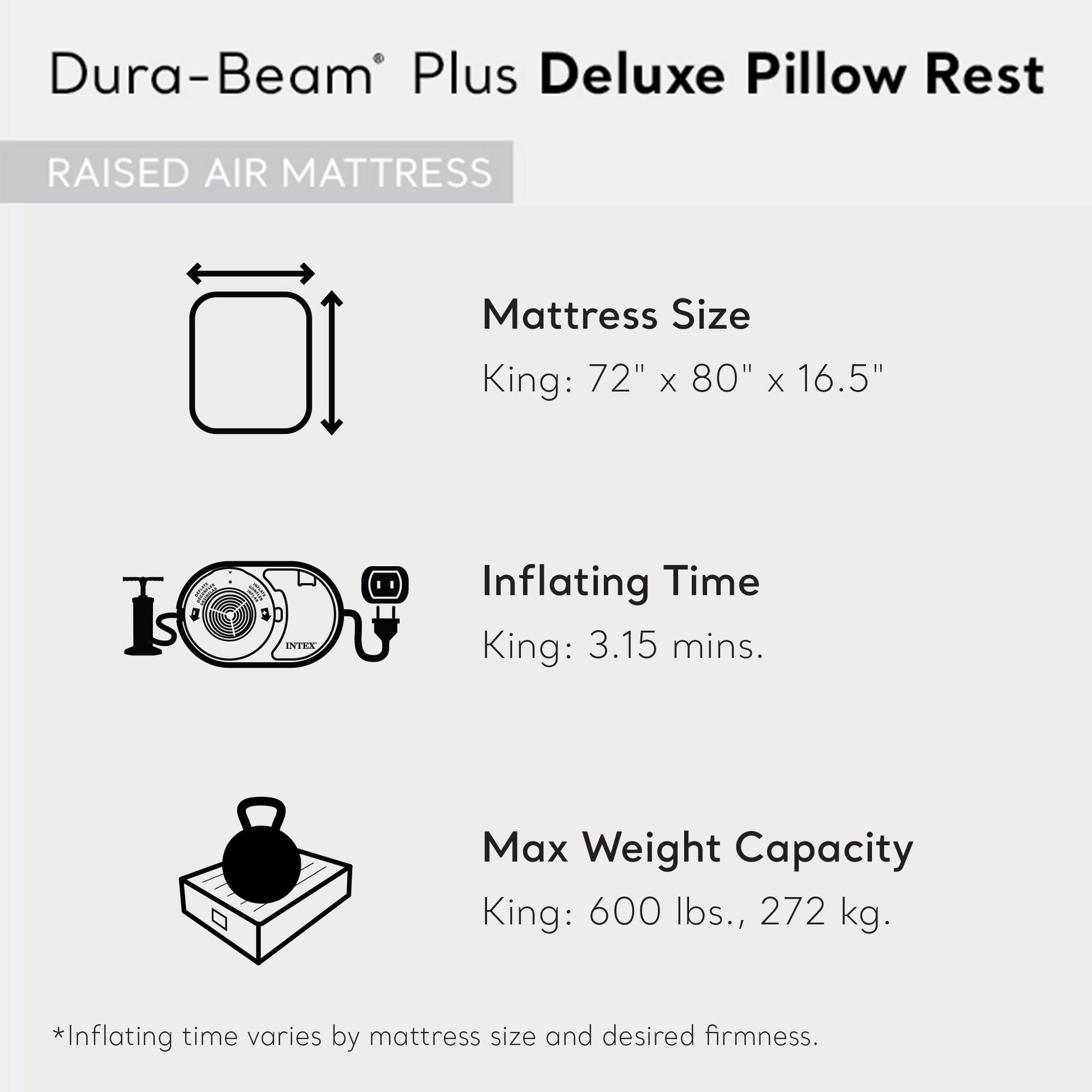 Intex Dura Beam Plus Deluxe Blow Up Air Mattress Bed with Built In Pump, King