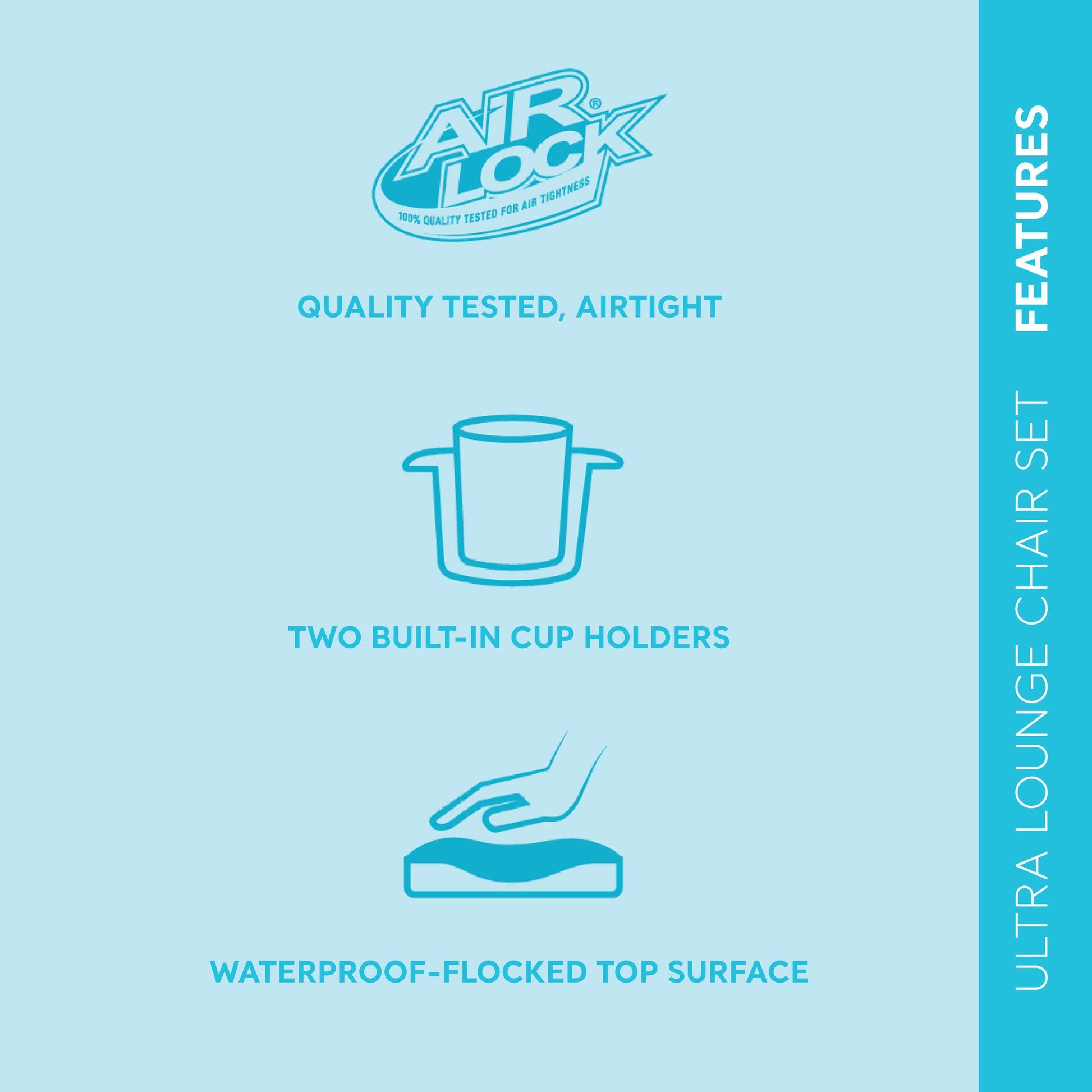 This set inflates and deflates quickly and features a comfortable flocked surface material, leisurely backrest, and an ottoman. Don't worry, a built in cup holder is there for you when you need an ice cold beverage after a long day. It is waterproof and comprised of sturdy PVC vinyl for a long life of peaceful relaxation. It can hold up to 220 pounds.