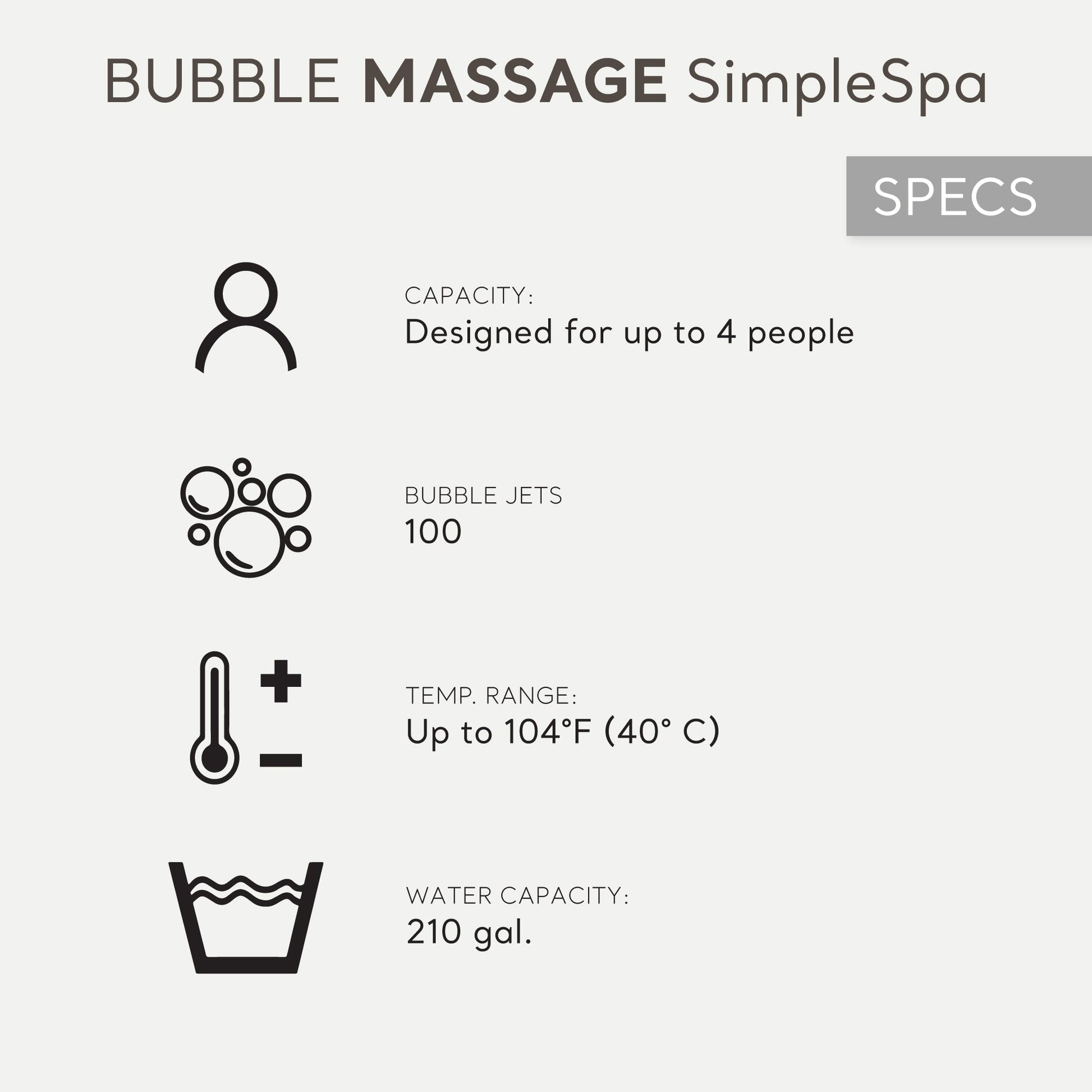 - Relax in comfort with 100 soothing high-powered jets for a refreshing massage and an ultimate spa experience