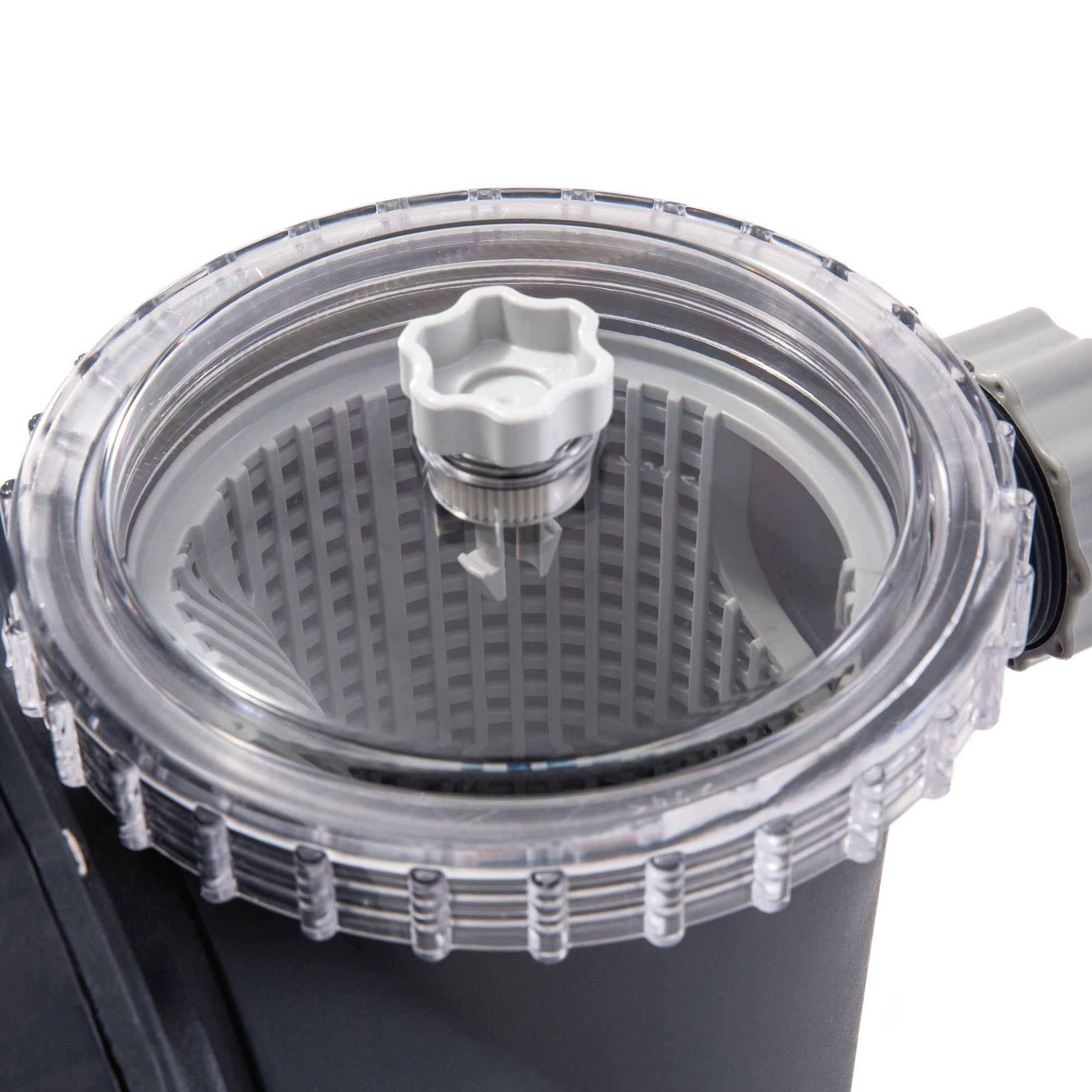 - Strainer basket included for easy sand protection and cleaning, along with a built-in 24-hour timer for automatic filtration scheduling, and Hydro Aeration Technology for enhanced circulation, water clarity, and increased negative ions