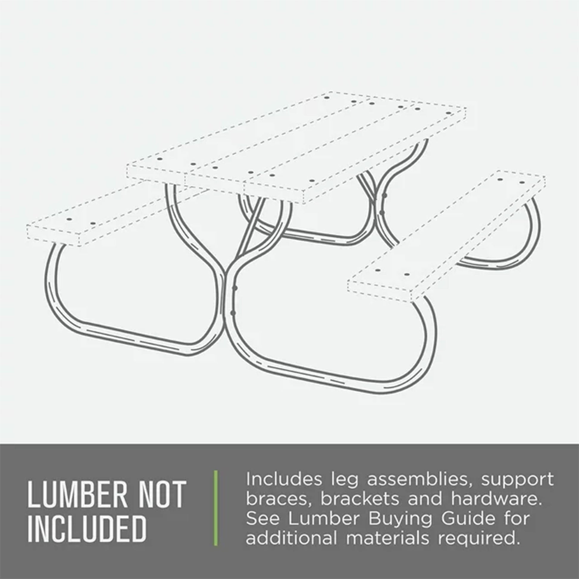 This table frame easily creates a comfortable seating and dining area for up to 6 picnickers. It can accommodate lumber of various lengths, allowing you to assemble a 4, 6, or 8-foot-long table to suit your needs. Whether you're hosting a small family picnic or a larger gathering with friends, this table frame provides the ideal solution for your outdoor dining setup. Crafted from heavy-duty powder-coated steel tubing with a 1-inch diameter, this picnic table frame is built to withstand the rigors of outdoor use. Its corrosion-proof construction ensures long-lasting durability, so you can enjoy years of reliable performance. Also, this table frame boasts a sleek black finish that adds a touch of elegance to any outdoor setting. Whether you're picnicking in the park, camping in the wilderness, or hosting a backyard barbecue, this frame will enhance the ambiance of your outdoor space. With easy-to-follow assembly instructions included, setting up your picnic table is quick and effortless, allowing you to spend less time assembling and more time enjoying your outdoor adventures.
