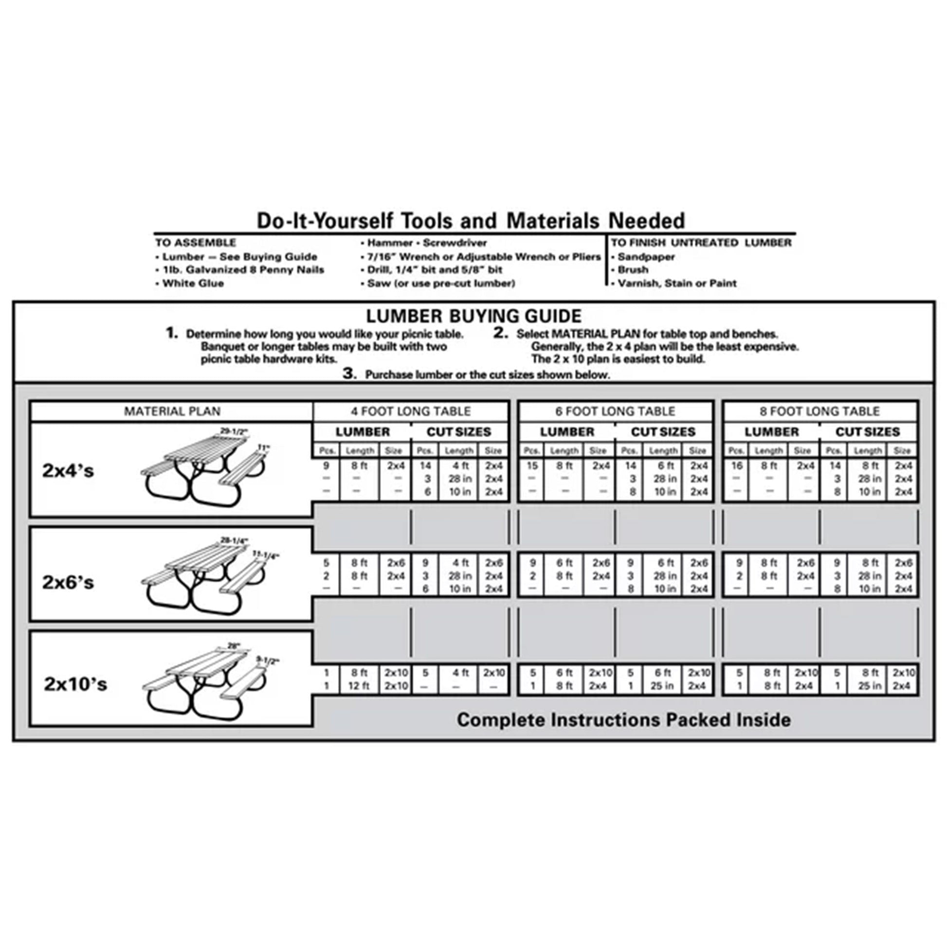 - Table frame easily assembles a table for 4, 6, or 8-foot lengths, accommodating up to 6 hungry picnickers with ease