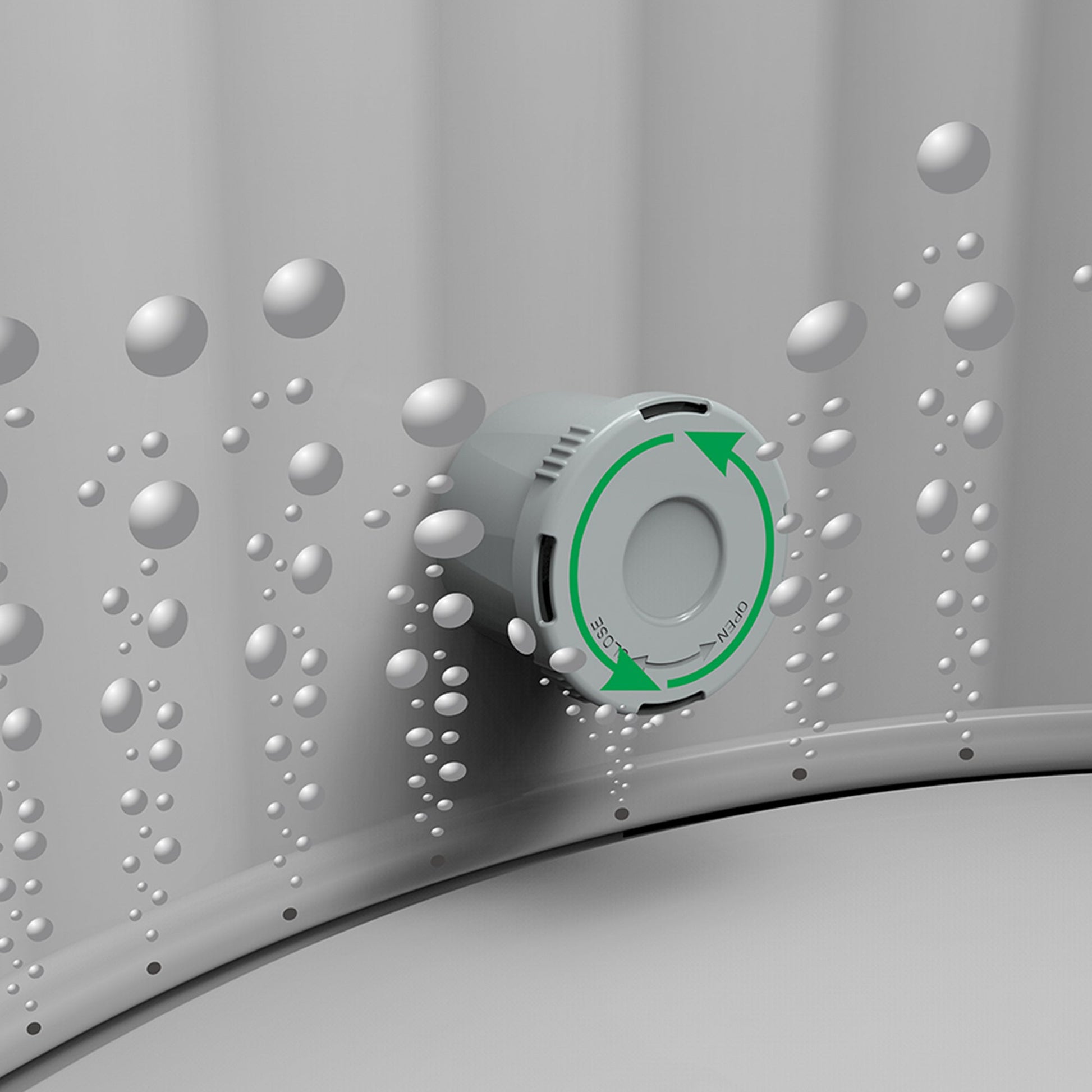 To provide you peace of mind while you relax, our hot tub spa has a secure and kid-friendly locking system. It also has a durable floor protector that gives your outdoor surface a strong base, preventing damage. The spa can be effortlessly deflated and stored when not in use, adding versatility to your outdoor space.