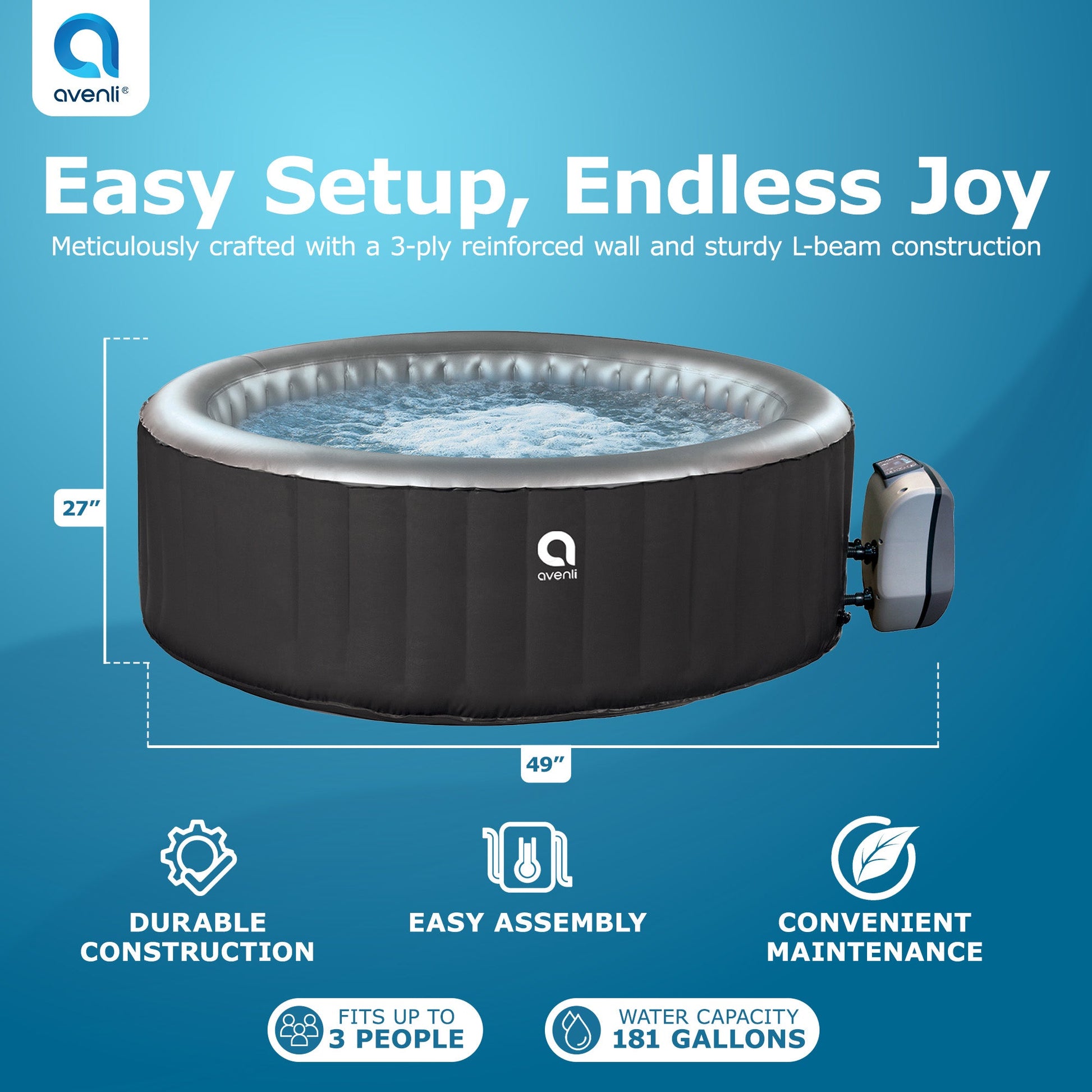 JLeisure Avenli 686 Liter 49 inch 3 Person Inflatable Round Hot Tub Spa, Black