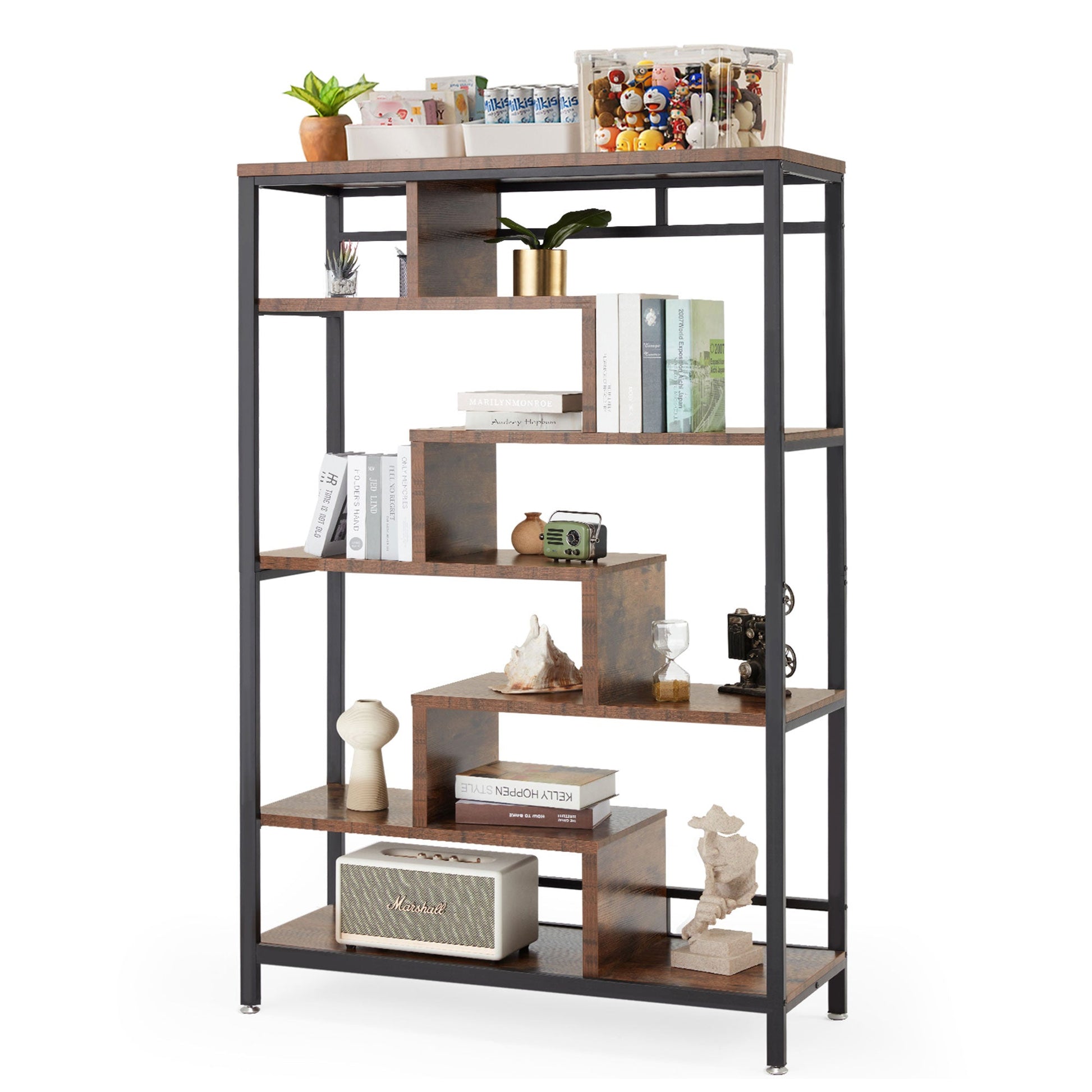 JOMEED 7 Tier Industrial Steel Open Display Asymmetrical Bookshelf Organizer