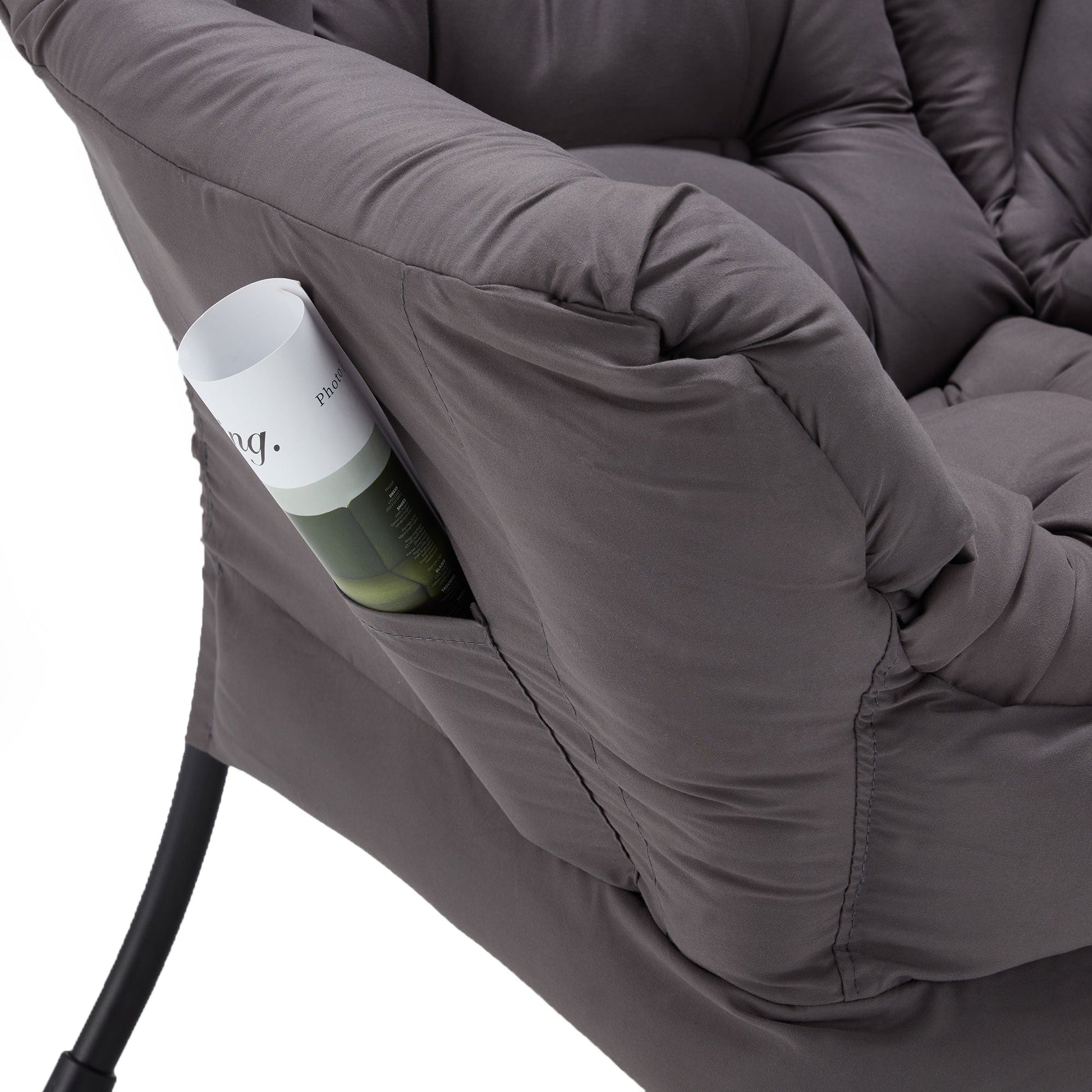 JOMEED Modern Plush Fabric Lazy Accent Chair with Armrests and Side Pocket, Grey