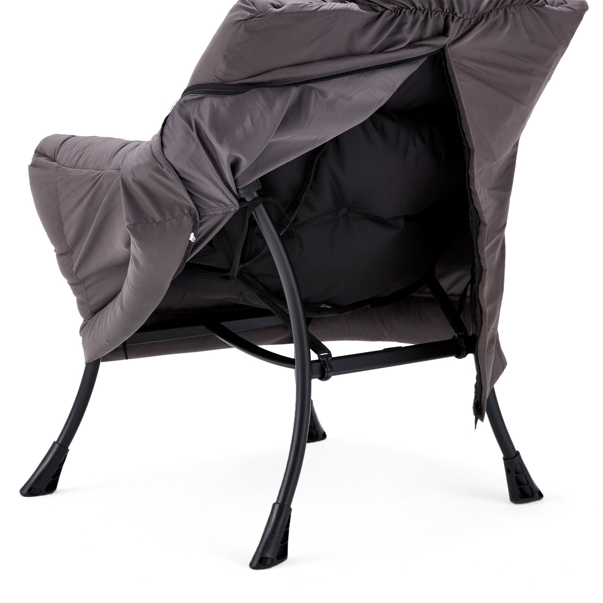 This sturdy, comfortable chair is covered with a zippered sofa-sponge cover that can be removed and the steel frame can be folded up for convenient storage purposes. Constructed with 4 metal legs and no-slip mats, the durable and stable structure ensures that playing games or reading books on the chair is a safe experience. The comfy cushioning provides plenty of comfort and support, designed for relaxation after a day's hard work and study. The chair features a small pocket on the right side of the chair to hold mobile phones, magazines, and more. With its sturdy steel construction and a weight capacity of up to 500 pounds, this upholstered accent chair is comfortable, sturdy, and stylish.