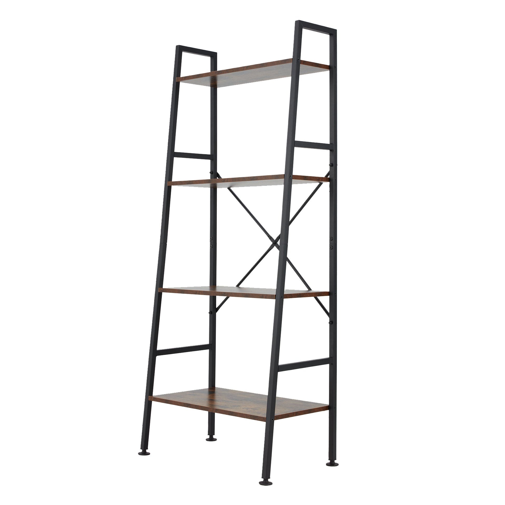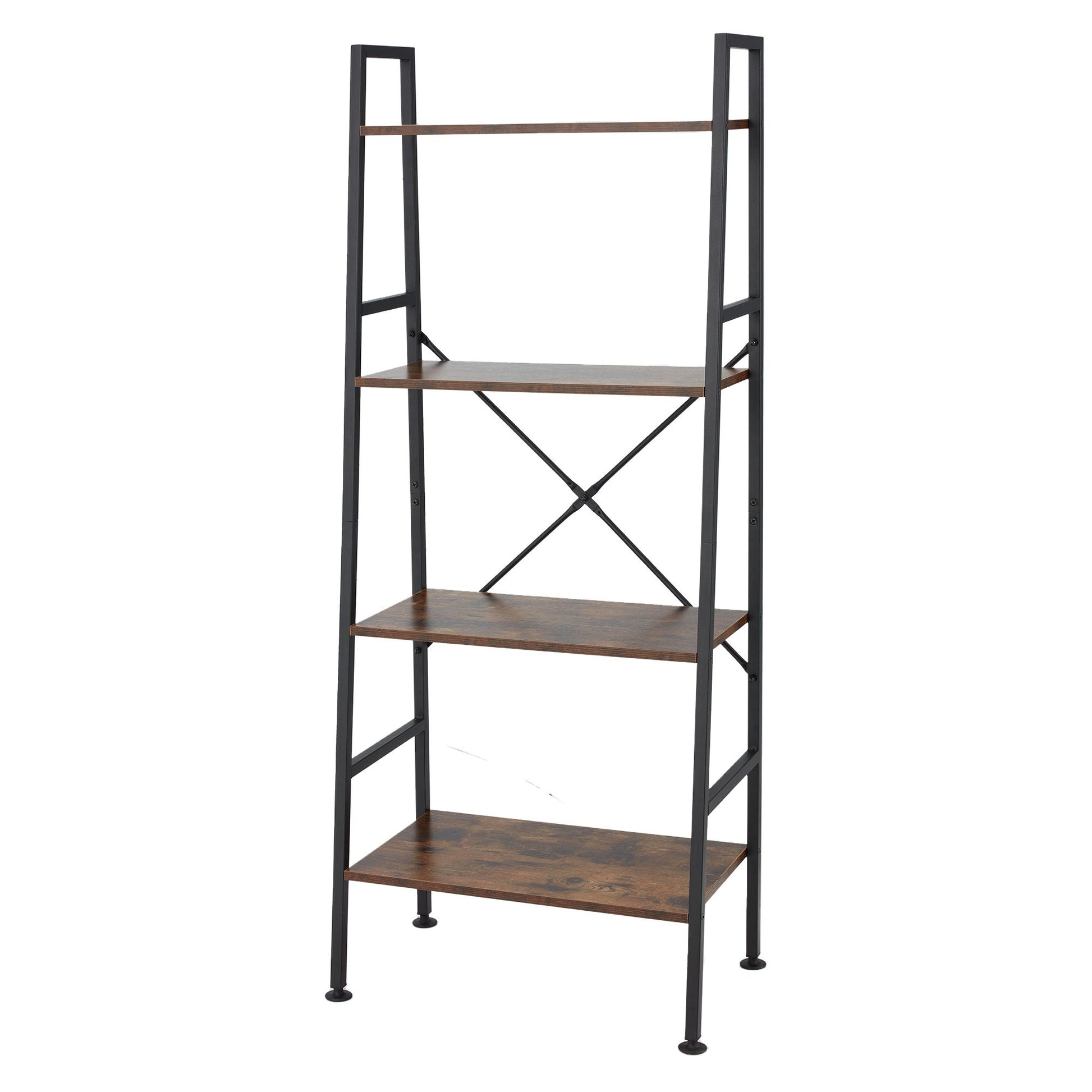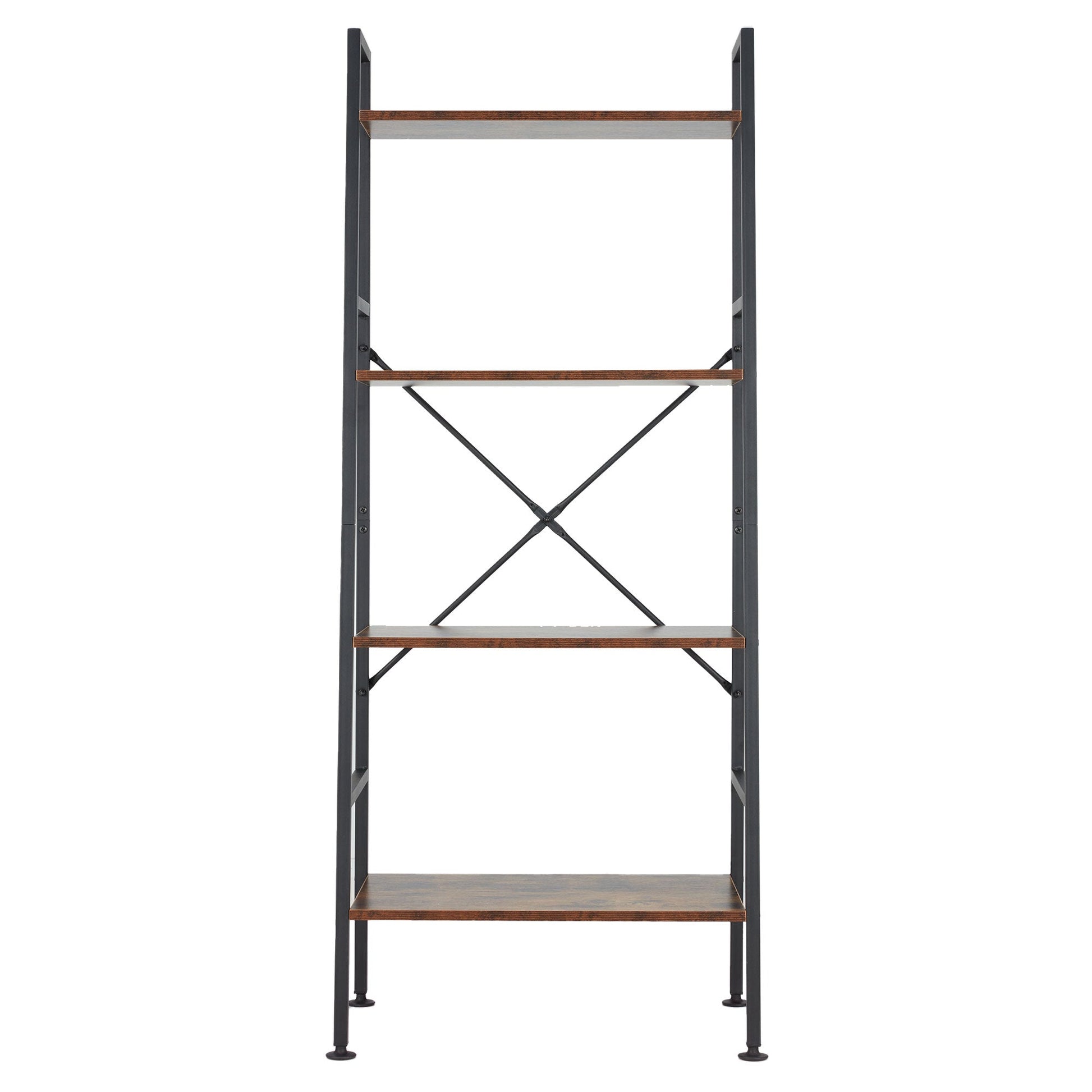 This quality bookshelf is crafted of engineered wood shelves with a steel frame that won't rust with extended use. A 4-tier design gives you plenty of space to store and display your favorite books, home decor, potted plants, and more in any room of your home. With a beautiful rustic modern design, this vintage-colored storage shelf will be an ideal accent in bedrooms, offices, or living spaces.