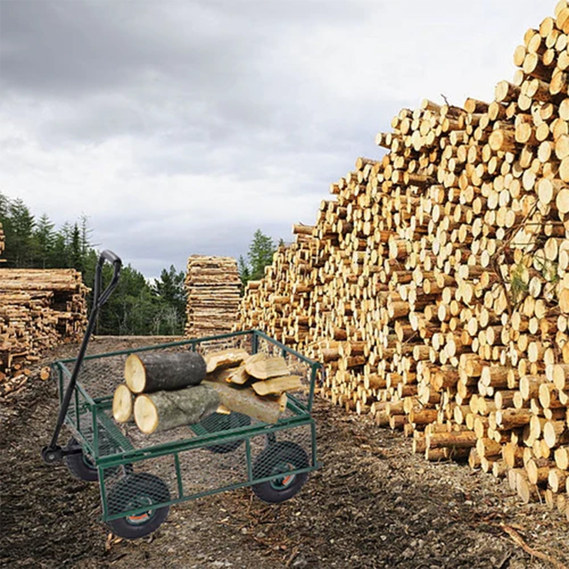 The utility wagon is ideal for hauling garden equipment, beach gear, mechanical equipment, and other items. Easily tackle your daily tasks, thanks to the cart's durable powder-coated steel frame, which can support up to 400 pounds of equally distributed weight. Additionally, the green powder coat finish is corrosion-resistant, ensuring lasting durability. When transporting oversized items, the sides of the wagon can be completely removed to be used as a platform dolly or as a four-sided wagon, or they can be folded down to make loading and unloading convenient. Equipped with 4 smooth-rolling 5 x 13-inch pneumatic wheels and a D-style handle for hassle-free steering and transport. The steel mesh design allows debris and water to pass through.