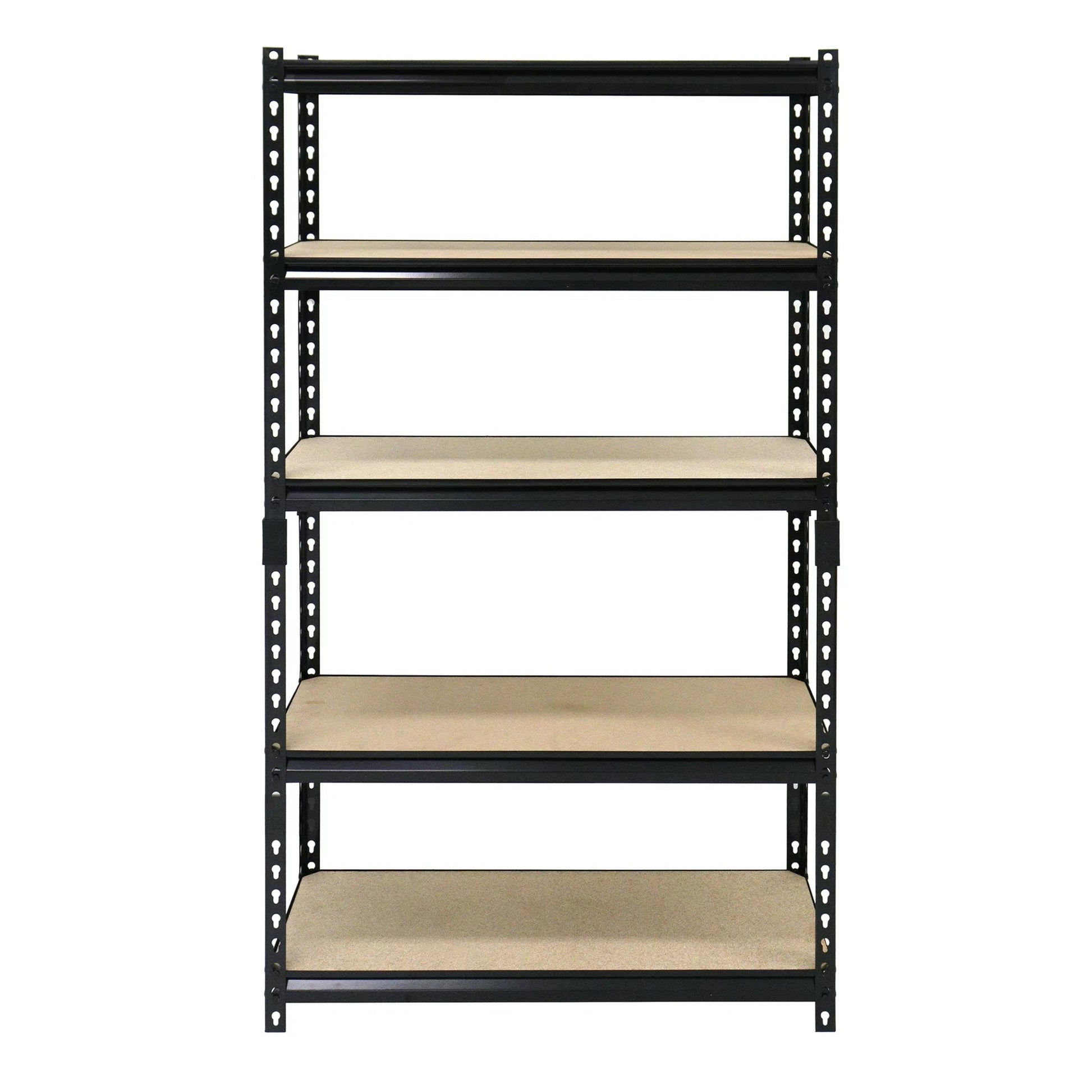You never have to worry about storing your items loosely in garages, basements, pantries, warehouses, or any other unorganized space. With this robust yet functional storage unit featuring 5 shelves, you can finally transform any cluttered home or office space into a spotless and organized one. The particleboard shelves adjust in 1.5-inch increments for high functionality, optimal convenience, and long-term storage use. Supporting loads up to 3,000 pounds (600 pounds per shelf) when evenly distributed, this utility storage shelving unit is capable of supporting the weight of heavy tools and accessories, ideal for use in your garage, workshop, or even in your laundry room.