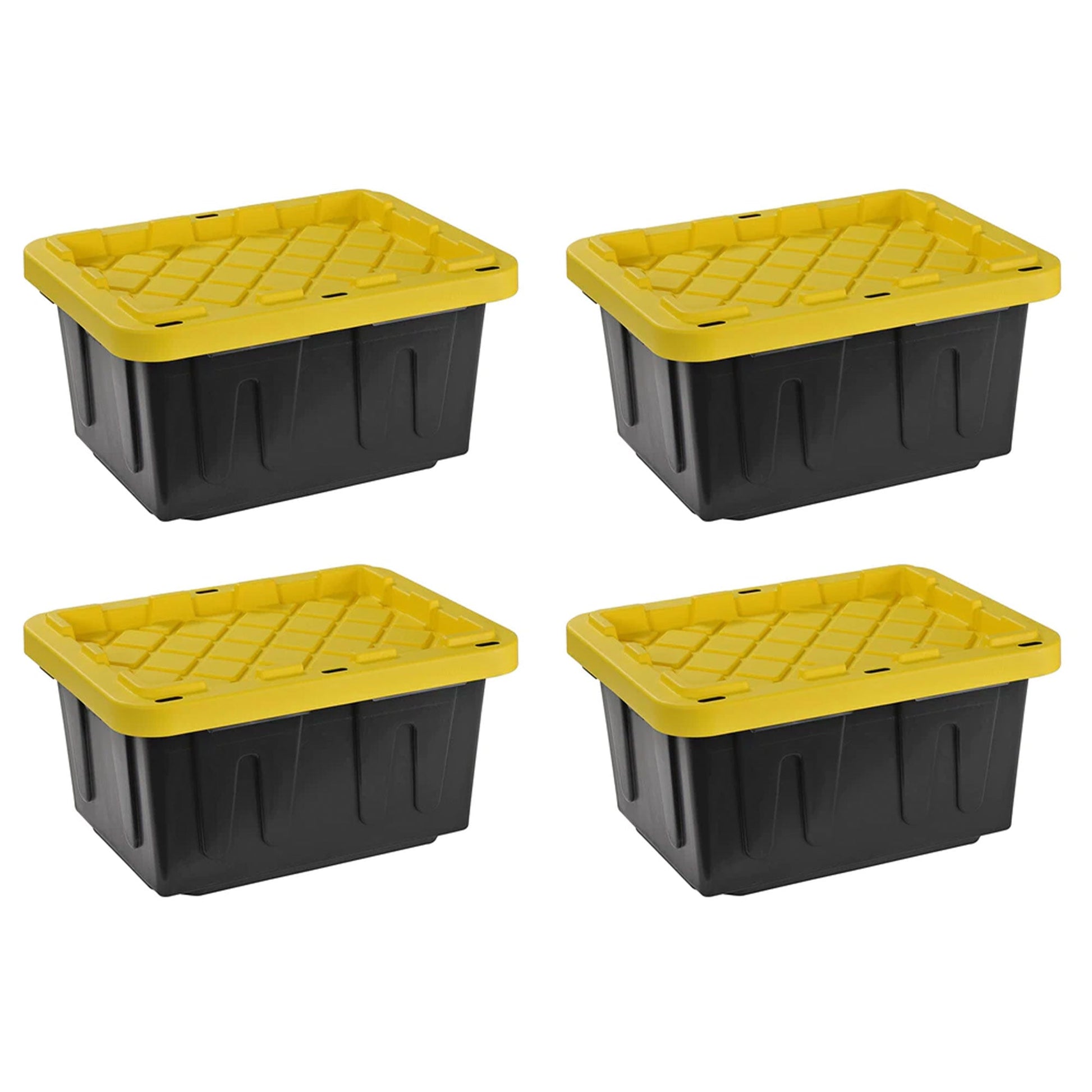 Juggernaut Storage 5 Gal Lockable Plastic Storage Tote, Black/Yellow (Set of 4)