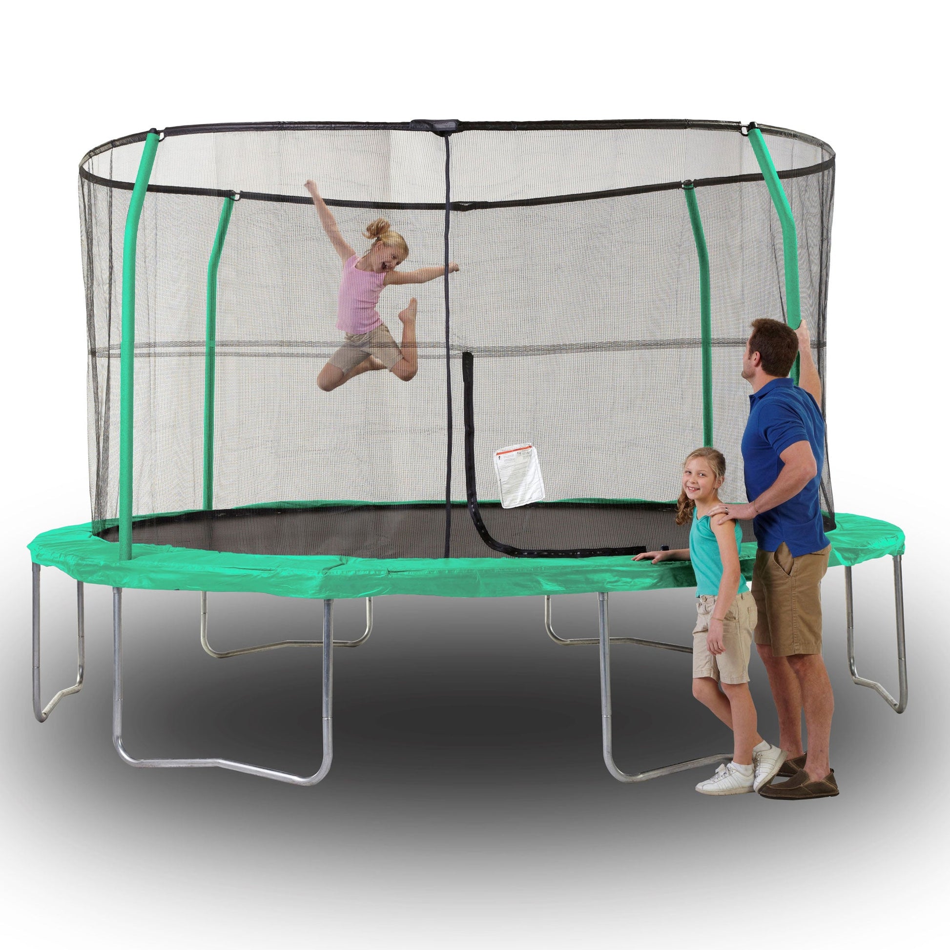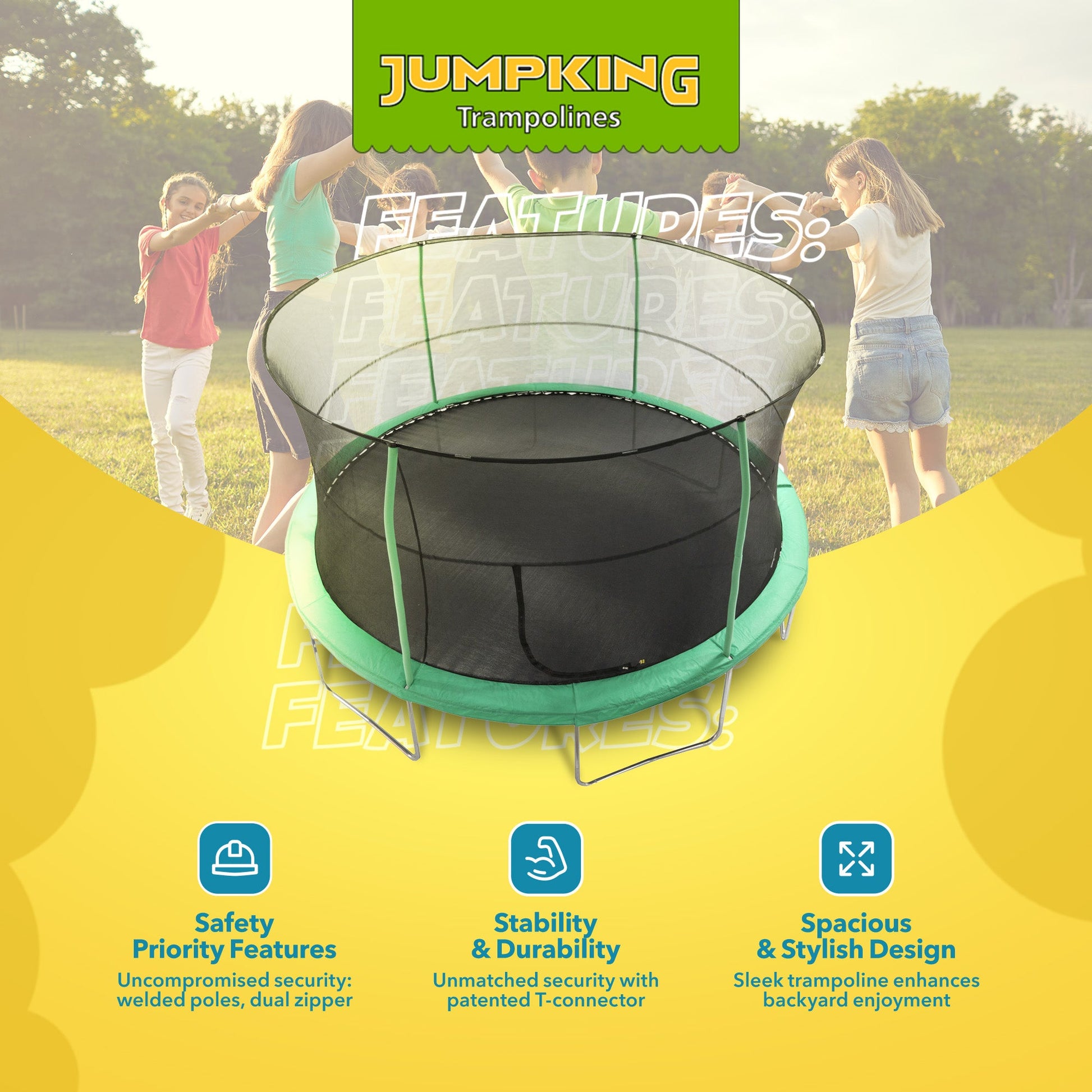 JumpKing JK1418C2 14 Foot Padded Enclosed Round Trampoline with G3 Poles, Green